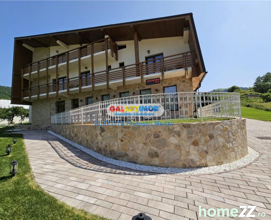 GalaxyImob va prezinta spre vanzare o Pensiune eleganta, proiectata cu viziune moderna si stil practic care este situata in zona de munte in apropriere de Pestera Dambovicioara!