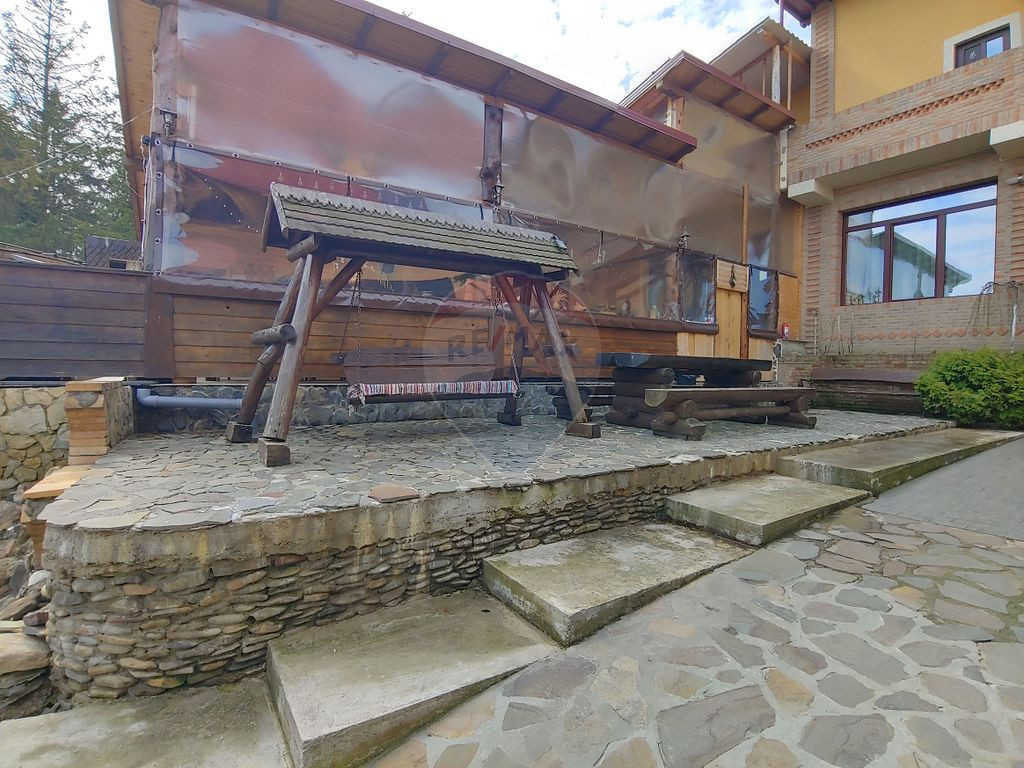 O proprietate deosebită, într-un peisaj natural superb și liniștit la un preț excepțional! Proprietatea cu o suprafață utilă de 1290 mp și teren intravilan în suprafață de 2197 mp din care 1731mp este situată în localitatea Varfu Câmpului la 5 minute de stațiunea balneară Cacica și 25 de minute de orașul Suceava, județul Suceava. Pensiunea este certificată de Ministerul Turismului cu 3 stele fiind alcătuită din două corpuri separate amenajate astfel încât se pot desfășura două evenimente separate-zile onomastice, botezuri etc Profitul anual brut este de aproximativ 100000 Euro. Pensiunea este structurată în două corpuri separate astfel: CORPUL 1: LA DEMISOL găsim o cramă spațioasă, un hol și o cameră cu baie proprie. LA PARTER se află un salon de mese cu o capacitate de 20 persoane, o bucătărie complet utilată, cuptor tradițional, șemineu, baie, saună, totul într-o atmosferă și armonie rustic-tradițională ce îți dă un sentiment de relaxare și liniște sufletească. Tot la parter regăsim o terasă închisă cu intrare din salonul de mese, iar jos avem amenajat un grătar și un cuptor cu toate cele necesare. LA ETAJUL 1 avem 7 camere cu baie proprie, una din camere este prevăzuta cu un balcon tip terasă cu o suprafață generoasă. LA ETAJUL 2 avem 6 camere cu baie proprie, iar două din camere au balcon propriu. CORPUL 2: LA DEMISOL găsim o cramă spațioasă și un garaj. LA PARTER se află un salon de evenimente cu o capacitate de 60 persoane, o terasă acoperită cu o capacitate de 40 de persoane-unde avem amenajat un grătar, plită, cuptor pitza, saună, ciubăr, duș, grup sanitar. LA ETAJUL 1 avem un apartament cu baie proprie și balcon și 4 camere cu baie proprie. LA ETAJUL 2 avem o cameră pentru jocuri de societate (biliard, rummy, tenis de masă etc) și două camere cu baie și terasă comună. Acoperișul este din tabla Lindab. Încălzirea proprietății se realizează la calorifere de oțel. Proprietatea are două centrale: una electrică de 40Kw, iar a doua Bio de 110Kw, Puffer de 2000 l+ boiler de 500 l. Proprietatea este dotată cu 2 panouri solare pentru apă caldă, 27 de panouri fotovoltaice+8 baterii solare, 3 invertoare de 5,5Kw și un generator diesel trifazic de 7,5Kw. Tâmplăria este din termopan. Ușile de la intrare sunt din termopan. Parchetul este parțial din lemn masiv de stejar și melaminat. Proprietatea are fântână cu 2 bazine de acumulare pentru apă potabilă- unul de 48mc, altul de 12 mc și fosă proprie cu 4 compartimente de 100mc de mare capacitate. Instalația electrică este de cupru, contract valabil cu E-ON. Casa este construită pe o structură de beton cu BCA izolată pe exterior cu polistiren de 10 cm și tencuială decorativă. Proprietatea se vinde mobilată complet. În fața proprietății sunt 20 locuri de parcare. Indicatorii de performanță energetică a imobilului sunt: - clasa energetică: B - consumul anual total specific de energie primară: 201 kWh/m2an