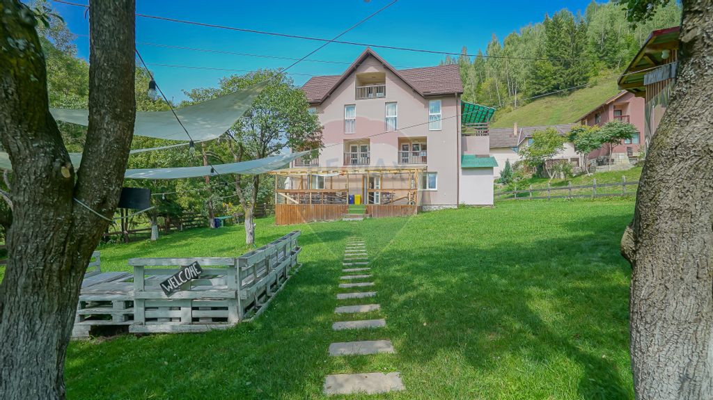 Într-una dintre cele mai pitorești și vizitate zone turistice din România, Moieciu de Jos, vă prezentăm o proprietate cu potențial real de transformare într-o afacere de succes în domeniul ospitalității. Amplasată pe un teren generos de 1.137 mp, această proprietate este pregătită să devină următoarea pensiune de referință din zonă. Date cheie ale proprietății: - Regim de înălțime: Demisol + Parter + 2 Etaje + Mansardă - Suprafață construită totală: 602 mp - Suprafață utilă: 475 mp - Construită în 2000, renovată complet în 2013; parterul a fost renovat parțial în 2020 - Structură mixtă: beton (fundație și parter) și lemn (etajele superioare + mansardă) Capacitate de cazare: - 10 camere duble - 2 camere triple - 2 apartamente la mansardă - majoritatea unităților oferă o priveliște frumoasă către Masivul Bucegi și Piatra Craiului, garantând o experiență memorabilă pentru turiști. Spații comune și zonă de relaxare: - Parterul oferă un spațiu generos de living, sală de mese și bucătărie, ideal pentru socializare, jocuri de societate sau un mic party între prieteni. - Terasa exterioară completează perfect atmosfera, oferind un cadru natural unde te poți bucura de liniște și aer curat. Curtea este frumos amenajată, cu două zone de grătar, un mic bar rustic și spații de relaxare care prind viață în sezonul cald: șezlonguri, hamac și vedere directă către natură. Oaspeții vor aprecia posibilitatea de a petrece timp afară, într-un cadru intim și prietenos. Poziționare excelentă: Situată la doar 5 km de Castelul Bran, proprietatea beneficiază de acces facil la principalele atracții turistice din zonă – un avantaj major pentru dezvoltarea afacerii. Și poate cel mai important atu – atmosfera locului: Moieciu de Jos este o zonă liniștită, cu aer curat și peisaje autentice, unde turiștii se bucură de plimbări relaxante în weekend, la pas sau cu bicicleta, pe traseele naturale din împrejurimi. Este un loc unde oaspeții revin nu doar pentru cazare, ci pentru liniște, natură și reconectare cu simplitatea. De ce merită investiția? Zonă turistică în plină dezvoltare, cu flux constant de vizitatori români și străini Ideală pentru o afacere de familie în turism – cu potențial de branding și fidelizare Spațiu generos, bine compartimentat, cu vedere de excepție Locație liniștită, frecventată de turiști pentru plimbări și relaxare Spații interioare și exterioare perfecte pentru activități de grup Curte amenajată cu zone de grătar, bar, șezlonguri și hamac Posibilitate de operare imediată sau personalizare suplimentară Această proprietate este ideală pentru cei care doresc să lanseze sau să extindă o activitate în turism, cu infrastructura pregătită, atmosfera creată și poziționare strategică în inima naturii! Contactează-ne pentru detalii sau vizionare. Moieciu de Jos este locul unde o investiție devine experiență, iar oaspeții devin clienți fideli!