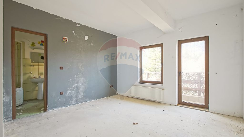 Vă propun spre vânzare o proprietate de tip investiție, compusă din pensiune turistică și casă din lemn, situată în Râșnov, Str. Glăjerie – Râul Mare, Nr. 501, într-o zonă liniștită, ideală pentru turism și relaxare, cu acces facil către principalele atracții din zonă. Un avantaj major al acestei proprietăți este faptul că include două corpuri distincte: pensiunea aflată în curs de renovare, care poate fi personalizată după preferințele noului proprietar, și casa din lemn complet mobilată și utilată, pregătită pentru utilizare imediată sau pentru generarea de venituri din închiriere. Pensiunea are regim de înălțime S+P+2E+M, o suprafață construită la sol de 175 mp și este amplasată pe un teren generos de 2881 mp. Casa din lemn are o suprafață utilă de 158 mp și dispune de un teren separat de 703 mp. Un alt punct forte îl reprezintă priveliștea deosebită, fiecare cameră a pensiunii beneficiind de vedere către Munții Bucegi, oferind un cadru natural spectaculos pentru turiști. Compartimentare: Pensiune turistică: - Subsol + parter + 2 etaje + mansardă - 8 camere, fiecare cu baie proprie (16 mpu fiecare + balcon) - Mansardă cu posibilitate de amenajare a 2 apartamente - Fiecare apartament poate fi compartimentat în: 2 camere + bucătărie + baie + 2 balcoane - La parter: zonă de bar, zonă de luat masa, bucătărie + zonă de relaxare în jurul șemineului - La subsol: saună funcțională, baie separată, cameră de relaxare, precum și zona tehnică unde este amplasat boilerul - Imobil aflat în proces de renovare, oferind posibilitatea de personalizare completă Casa din lemn (complet funcțională): - Suprafață utilă: 158 mp - 4 camere - 4 băi - Bucătărie complet utilată - Balcoane pentru camerele de la etaj - Se vinde complet mobilată și utilată - Poate fi utilizată ca locuință permanentă pentru proprietar, spațiu pentru angajați sau închiriată separat - Imobilul nu este intabulat momentan, însă se poate intabula la cerere, în urma plății unui avans Datorită configurației și suprafețelor generoase, proprietatea este ideală atât pentru dezvoltarea unei afaceri în turism, cât și pentru utilizare mixtă – locuință + activitate economică. Dotări și utilități (pensiune): - Apă - Fosă septică - Curent trifazic - Centrală termică pe lemne - Puffer 1500 L - Boiler 1500 L (amplasat la subsol) Alte informații: - Posibilitate de finalizare „la cheie” a pensiunii cu un buget estimativ între 30.000 € – 50.000 €, în funcție de finisaje - Se acceptă plată eșalonată sau asociere - Casa din lemn poate fi utilizată imediat Avantaje suplimentare: - Comision 0% pentru cumpărător - Două corpuri de clădire cu funcționalități diferite - Teren generos, ideal pentru dezvoltare - Zonă liniștită, potrivită pentru turism - Priveliște către munți - Potențial ridicat de rentabilitate Dacă această proprietate prezintă interes pentru dumneavoastră sau doriți mai multe detalii, vă stau la dispoziție pentru programarea unei vizionări!