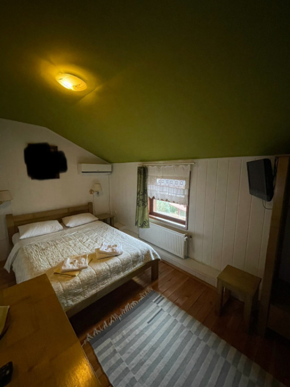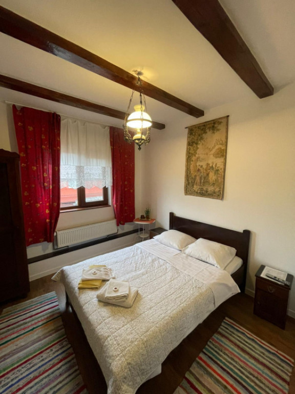 Blitz va propune spre vânzare o pensiune P+1+M, complet mobilată și utilată, situată într-o zonă liniștită și ideală pentru activitate turistică. Proprietatea dispune de 9 camere de cazare, fiecare cu baie proprie și duș, iar una dintre camere este dotată cu cadă și terasă proprie, oferind un plus de confort oaspeților. Capacitatea totală este de 20 de locuri de cazare. Compartimentare și suprafețe Parter: Restaurant cu capacitate de 60 persoane Bucătărie/piterie complet utilată Terasă acoperită Zone de relaxare cu șeminee (în total 3 în întreaga clădire) Etaj 1 (140 mp): 3 camere de cazare, fiecare cu baie proprie Mansardă (140 mp, construită în 2008): 6 camere de cazare, baie proprie Spații optim compartimentate pentru confortul turiștilor Caracteristici tehnice și dotări Suprafață construită pe nivel: 140 mp / nivel Suprafața totală teren: 473 mp Construcție parter + etaj 1: 2004 Mansardă: 2008 Izolație exterioară: 5 cm Centrale pe gaz și lemn, boiler, sistem de aer condiționat Trei șeminee funcționale Panouri fotovoltaice de 10 kW, amplasate pe acoperiș – orientare sud Curent trifazic, necesar pentru utilajele din bucătăria restaurantului Imobilul se vinde la cheie, cu toate dotările și echipamentele existente. Avantaje Afacere complet funcțională, ideală pentru preluare imediată Costuri reduse cu energia datorită panourilor fotovoltaice Spații generoase și bine gândite pentru turism Zonă de restaurant perfectă pentru evenimente Construcție solidă, cu utilități moderne și posibilități multiple de extindere a serviciilor Cod ofertă / ID BLITZ: P159188 Id intern: P159188