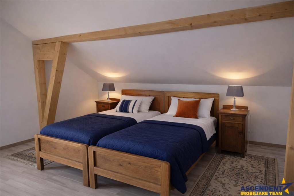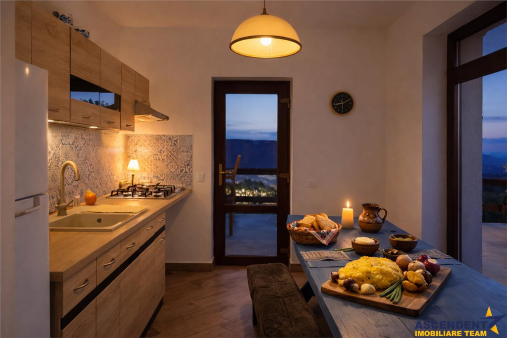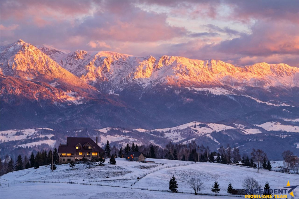 Comision cumparator: 0% ASCENDENT IMOBILIARE este onorata sa va propuna spre vanzare o vila individuala in Satul Pestera, judetul Brasov, amplasata intr-unul dintre cele mai spectaculoase sate montane din Romania, cu vedere directa catre masivele Piatra Craiului si Bucegi. Construita in anul 2018, are o suprafata totala construita de 390 mp, suprafata utila de 381 mp si este amplasata pe un teren de 1.000 mp, cu curte individuala libera si intimitate deplina. Proprietatea dispune de 9 camere, dintre care 6 dormitoare, 9 bai, 1 bucatarie complet mobilata si utilata si 2 balcoane cu panorame largi asupra naturii. Structura solida si constructia recenta ofera confort modern intr-un cadru autentic montan. Interiorul este mobilat, cu finisaje atent alese: parchet si gresie, pereti finisati cu faianta si lavabil, ferestre termopan PVC, izolatie termica exterioara, incalzire prin centrala termica si calorifere. Spatiile sunt luminoase, aerisite si gandite pentru a oferi atat functionalitate, cat si atmosfera calda de refugiu montan. Zona de living cu semineu, dormitoarele cu privelisti spectaculoase si bucataria primitoare creeaza un echilibru intre eleganta, confort si autentic. Pestera este recunoscut la nivel national si international drept unul dintre cele mai frumoase sate din Romania, situat in Parcul National Piatra Craiului. Zona este apreciata pentru peisajele dramatice, aerul curat, linistea profunda si arhitectura traditionala pastrata. In apropiere se afla Bran, Moieciu si Zarnesti, destinatii cautate atat de turisti romani, cat si straini. Acces rapid catre Brasov si catre partiile de schi din Poiana Brasov completeaza atractivitatea locatiei. Aceasta proprietate nu este doar o casa, ci un stil de viata. Este alegerea ideala pentru cei care cauta intimitate, panorama spectaculoasa, investitie sigura in turism premium sau o resedinta exclusiva intr-un cadru natural protejat. O oportunitate rde a detine o resedinta individuala intr-o zona cu reputatie solida, cerere constanta si potential de apreciere pe termen lung. Consilier dedicat alesei oferte domnul Adrian Petrescu Telefon/ WhatsApp: 0732847051 ID intern: 0062331. Detalii, fotografii suplimentare si alte oferte similare exclusive: www.ascendentimobiliare.ro