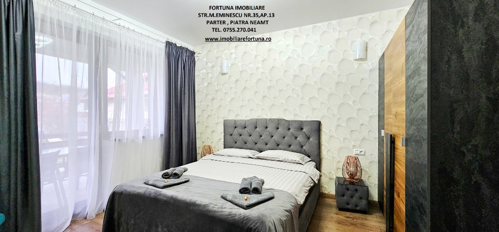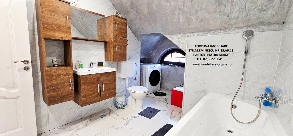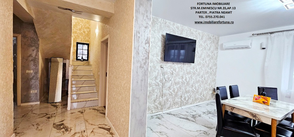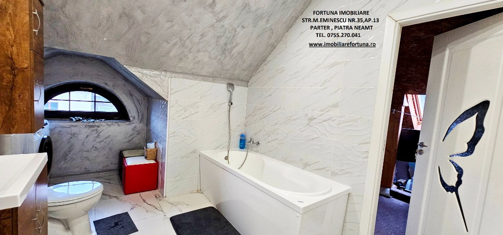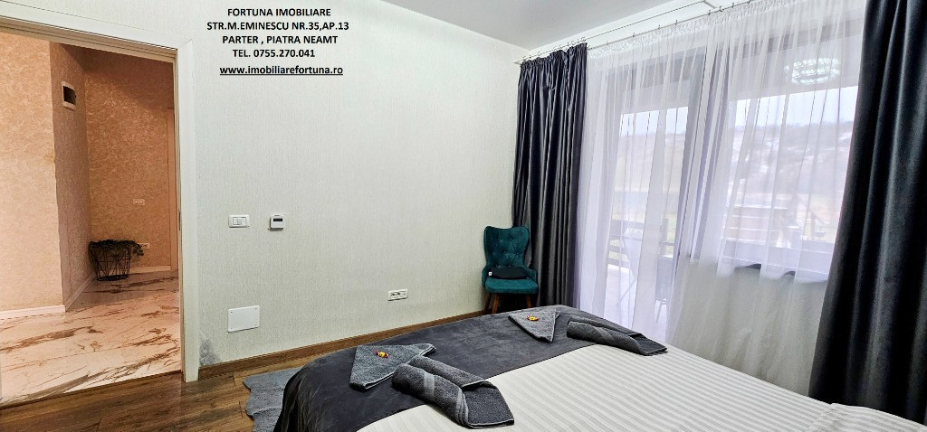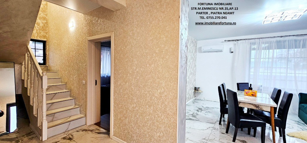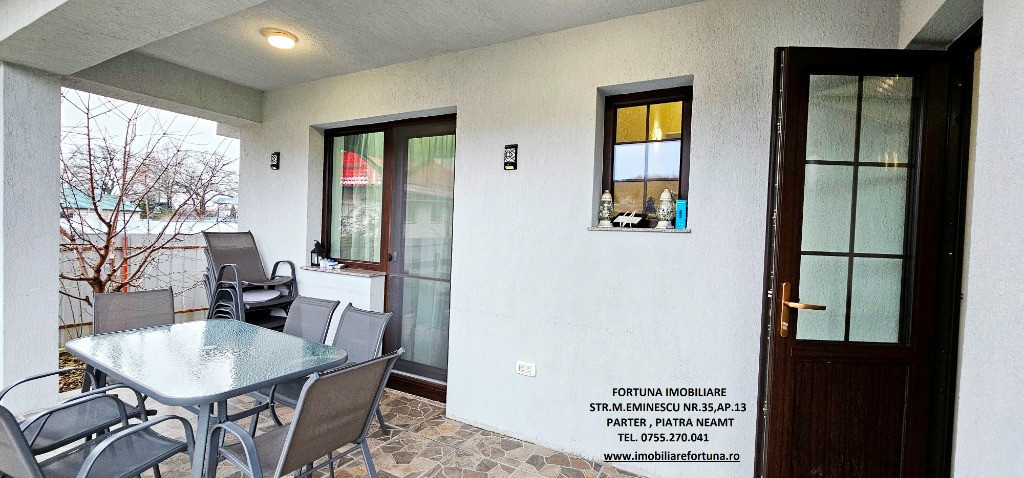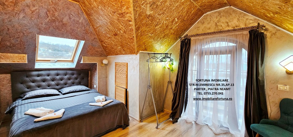 OPORTUNITATE DE INVESTIȚIE! AFACERE LA CHEIE – PENSIUNE TURISTICĂ CU SPAȚIU CAZARE ȘI DE AGREMENT, TRANFORMABILĂ ÎN LOCUINȚĂ PRIVATĂ, PLUS TEREN 3600 MP, 195.000 EURO Iubitorilor de natură și de agrement, interesați să achiziționeze o proprietate modernă, cu o arhitectură specific bucovineană, echipată complet, aflată în circuitul turistic și care generează venituri imediate, FORTUNA IMOBILIARE propune acest ansamblu imobiliar situat într-o zonă liniștită, cu un peisaj natural, la 13 km de centrul Mun. Piatra Neamț - com. Girov. Proprietatea, cu un vibe aparte în peisajul turistic local, este compusă din suprafața de 3.600 mp teren, pe care o echipă de constructori au făurit această micuță perlă turistică din zonă, ce poate fi transformată oricând în locuință atrăgătoare pentru familie, grație versatilității proiectului. Vila cu funcțiuni de cazare și de agrement, înscrisă în circuitul Pensiunilor Agroturistice din România, are licență și autorizații de funcționare la zi, este edificată pe 2 nivele P+M, fiind compartimentată astfel: La parter: hol, living, baie, bucătărie cu ieșire în terasă acoperită, 2 dormitoare; La mansarda : 2 dormitoare, fiecare prevăzut cu câte un balcon, baie și dressing. Proprietatea este prevăzută cu aer condiționat, sistem de încălzire în pardoseală, sistem de supraveghere video și sistem de alarmă. Este conectată la utilitățile zonei ( apă și curent electric de la rețea ). Deține o curte amplă, frumos amenajata cu gazon, flori, plante ornamentale, grătar, ciubăr. Se vinde mobilată și utilată cu tot necesarul pentru activități de cazare, precum și pentru un trai confortabil. Preț 195.000 EURO Pentru o prezentare detaliată a acestei oferte, furnizarea unor informații suplimentare referitoare la situația juridică / identificarea imobilului și programarea unei vizionări, vă invităm la sediul nostru, Fortuna Imobiliare, situat pe str. M. Eminescu, nr. 35, ap. 13, parter, lângă fostul Tribunal, tel. contact 0755.270.041. Your comfort is our priority ! Oferta noastră completă o găsiți aici: https://imobiliarefortuna.ro/