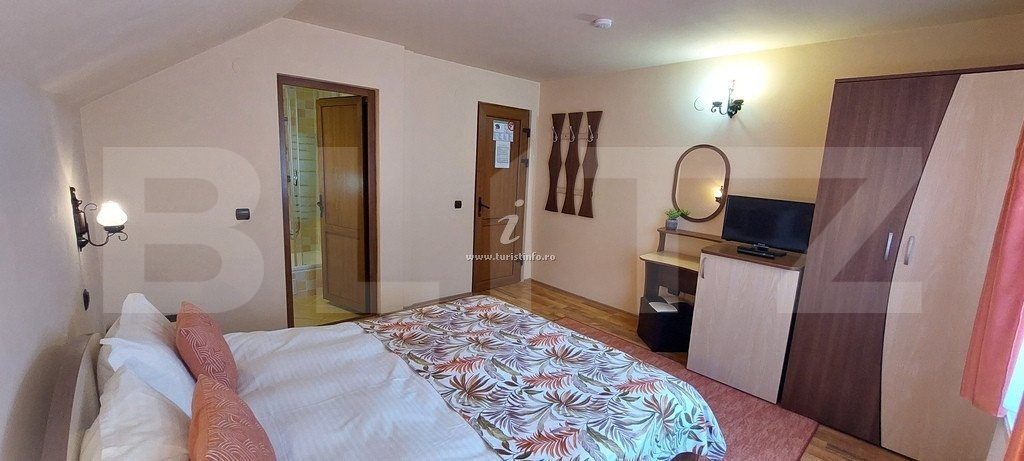 Blitz va propune pensiune la 200m de Cheile Gradistei, pe malul paraului Turcu. 6 camere duble, 3 camere superioare, 1 apartament cu bucatarie proprie și intrare separată. Pensiunea mai dispune de 1 foisor inchis (incalzire, Tv ), acces la rau din curte, si 1 foisor 16 persoane cu gratar, inca 3 foisoare a cate 6 persoane pe malul paraului, living 1 (sala de mese de 80 mp), living 2 (35 mp, 16 locuri), 2 Lcd, bucatarie utilata( 2 chiuvete, 2 aragazuri, cuptor microunde, toaster, filtru de cafea, fierbator, frigider); incalzire centrala, apa calda non-stop; curte amenajata cu alei si gazon, sezlonguri, imprejmuita cu gard, iluminata; parcare iluminata; loc de joaca pentru copii compus din complex de joaca(turnulet, topogan, rampa de catarare, groapa nisip+accesorii, 2 leagane-unul cu sistem siguranta bebe)trambulina, balansoar, topogan, casuta. 2 gratare (este necesar sa aveti carbuni de gratar) spatiile comune sunt supravegheate video; Cod ofertă / ID BLITZ: P106492 Id intern: P106492