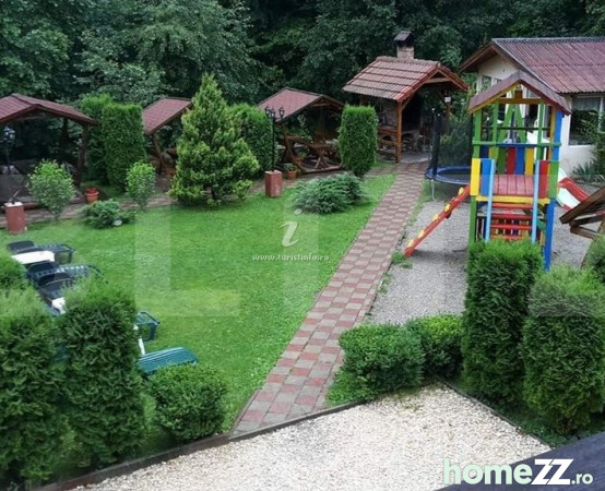 Blitz va propune pensiune la 200m de Cheile Gradistei, pe malul paraului Turcu. 6 camere duble, 3 camere superioare, 1 apartament cu bucatarie proprie și intrare separată. Pensiunea mai dispune de 1 foisor inchis (incalzire, Tv ), acces la rau din curte, si 1 foisor 16 persoane cu gratar, inca 3 foisoare a cate 6 persoane pe malul paraului, living 1 (sala de mese de 80 mp), living 2 (35 mp, 16 locuri), 2 Lcd, bucatarie utilata( 2 chiuvete, 2 aragazuri, cuptor microunde, toaster, filtru de cafea, fierbator, frigider); incalzire centrala, apa calda non-stop; curte amenajata cu alei si gazon, sezlonguri, imprejmuita cu gard, iluminata; parcare iluminata; loc de joaca pentru copii compus din complex de joaca(turnulet, topogan, rampa de catarare, groapa nisip+accesorii, 2 leagane-unul cu sistem siguranta bebe)trambulina, balansoar, topogan, casuta.