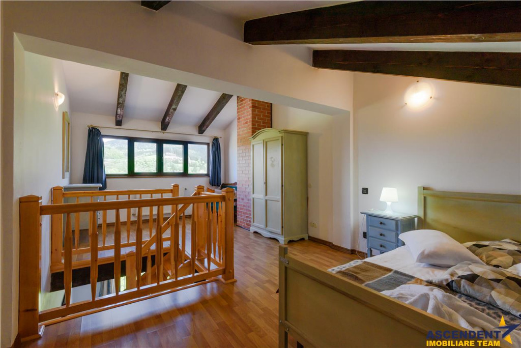 Comision cumparator 0%. ASCENDENT IMOBILIARE va prezinta spre vanzare o REPREZENTARE EXCLUSIVA materializata printr-o proprietate de exceptie, situata in Bran, cu o pozitionare privilegiata, la doar 3 km de castel si la 20 de minute de Brasov, reprezentand investitia ideala intr-un imobil tip pensiune sau casa de vacanta, care prin locatie, design si arhitectura, se integreaza perfect in povestile acestor meleaguri. Resedinta este realizata cu mult bun gust, imbina armonios elementele clasice cu cele moderne si creaza o armonie perfecta de cromatica si stil, cu peisajul montan. Este dispusa pe P M1 M2, in suprafata utila de 300 mp si cu o configuratie pe 14 camere, din care 6 unitati individuale, cu baie proprie si balcon, antreu, sala de mese, receptie, bucatarie, camera de joaca, grup sanitar, camera tehnica, terasa, foisor cu loc de gratar, spatii conexe si dependinte. Cele cinci camere turistice de la primul nivel, se remarca prin unicitatea compartimentarii, prin faptul ca acestea comunica independent cu incaperea de sus printr-o scara interioara din lemn. Imobilul este amplasat pe un teren in suprafata de 2.863 mp, pe care se pot amenaja cu usurinta elemente de peisagistica, cort de evenimente, locuri de joaca, foc de tabara, piscina sau ciubar, tiroliana, teren de tenis, volei, mini fotbal, baschet, tir cu arcul si multe alte facilitati. Completeaza faptul ca imobilul este pozitionat usor colinar si asta confera o priveliste fantastica asupra muntilor si o panorama deosebita. Din punct de vedere tehnic, cladirea beneficiaza de apa la retea, curent electric panouri solare, centrala termica pe lemn, puffer apa calda, fosa septica de mare capacitate, gazul este pe proprietate, iar constructia este extrem de solida, realizata cu materiale de calitate, pereti din caramida, stalpi si plansee din beton armat, acoperis cu tigla, fatada si elemente ornamentale specifice, pentru a da si mai mult farmec proprietatii. Pensiunea este clasificata cu 3 stele si este pretabila segmentului familial, circuitului turistic, corporate, evenimente si se preda la cheie, cu aviz ISU, gata de functionare din prima zi. Consultant dedicat acestei oferte, GEORGE MOSOR Telefon/whatsapp 0732.847.048 Email: [email protected]