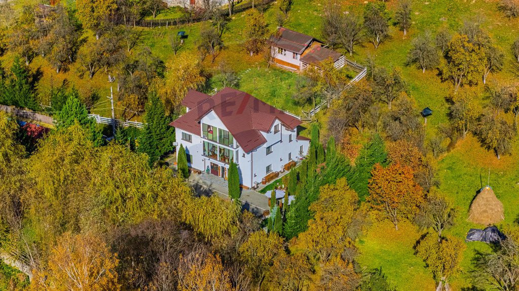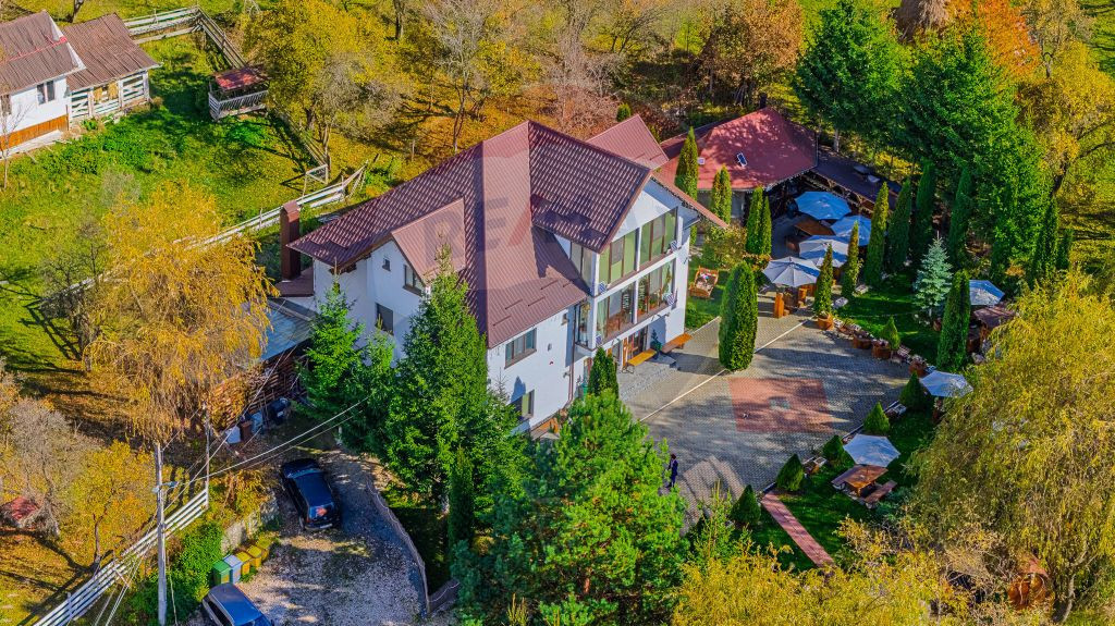 Salutare. Va propunem spre vanzare in reprezentare exclusiva si comision 0%, o pensiune cu piscina, 10 camere, spatiu de relaxare cu ciuber si sauna in Rucar. În mijlocul peisajelor spectaculoase ale Culoarului Rucăr–Bran, la poalele munților și la marginea pădurilor, se află Pensiunea Scărișoara, o proprietate aparte, unde liniștea muntelui se îmbină cu rafinamentul unei construcții solide și bine gândite. Situată în Rucăr, județul Argeș, pensiunea oferă o priveliște încântătoare asupra naturii și un acces facil către atracțiile turistice din zonă – Cheile Dâmbovicioarei, Barajul Rucăr, Piatra Craiului, Bran, Moeciu și multe alte destinații montane de poveste. Construită în anul 2006 și clasificată în 2009 ca pensiune turistică de 3 stele, Scărișoara impresionează prin arhitectura armonioasă, spațiile generoase și atenția pentru detaliu. Suprafață desfășurată: 327 mp Teren total: 7.600 mp complet amenajat Toate utilitățile: gaz, curent, apă și canalizare – funcționale și racordate la rețelele publice Acces privat: alee lungă de intrare, poartă automată cu barieră și sistem video. Clădirea se desfășoară pe parter, etaj și mansardă, fiecare nivel având rolul său bine conturat: -Parter – zona de primire și relaxare -Living spațios de 50 mp, cu recepție elegantă -Două holuri (2,6 mp și 16 mp) ce fac trecerea armonioasă între spații -Bucătărie complet utilată, 12 mp, cu acces direct spre exterior -Baie de serviciu de 6,5 mp -Cameră de 14,8 mp, ideală pentru oaspeți sau birou administrativ de 16 mp Etaj: -Hol generos de 29,2 mp, amenajat ca living comun -4 camere cu băi proprii, fiecare cu design funcțional -Balcon interior (logie) de 2,6 mp, perfect pentru un moment de relaxare Mansardă: - Hol de 24 mp cu spatiu de living -2 camere cu baie individuală -Un apartament cu 2 camere spațios, cu balcon de 6,84 mp și priveliște superbă asupra curții și dealurilor din jur În total, pensiunea dispune de 8 camere active și un apartament cu 2 camere – ideale pentru familii, grupuri sau turiști individuali. Spații exterioare și facilități: Terenul de aproape 8.000 mp oferă un cadru natural aparte, perfect îngrijit și dotat cu multiple facilități pentru relaxare, divertisment și ospitalitate. -Piscină exterioară din panouri izoblock, complet amenajată, ideală pentru sezonul cald -Saună electrică – perfectă pentru relaxare în sezonul rece -Ciubar din lemn, oferă experiența autentică a băilor rustice în aer liber -Iaz cu pești vii, element decorativ și recreativ în același timp -Mai multe foișoare pentru mese, seri la foc și socializare -Snack bar și bucătărie mare de vară, complet utilată, cu: -Cuptor de pizza pe lemne -Două grătare -Rotisor și chiuvetă exterioară Alee pietruită de acces și curte amenajată cu multă verdeață. Totul este conceput pentru confort, relaxare și experiență autentică. Pentru detalii suplimentare, asteptam telefonul dumneavoastra!