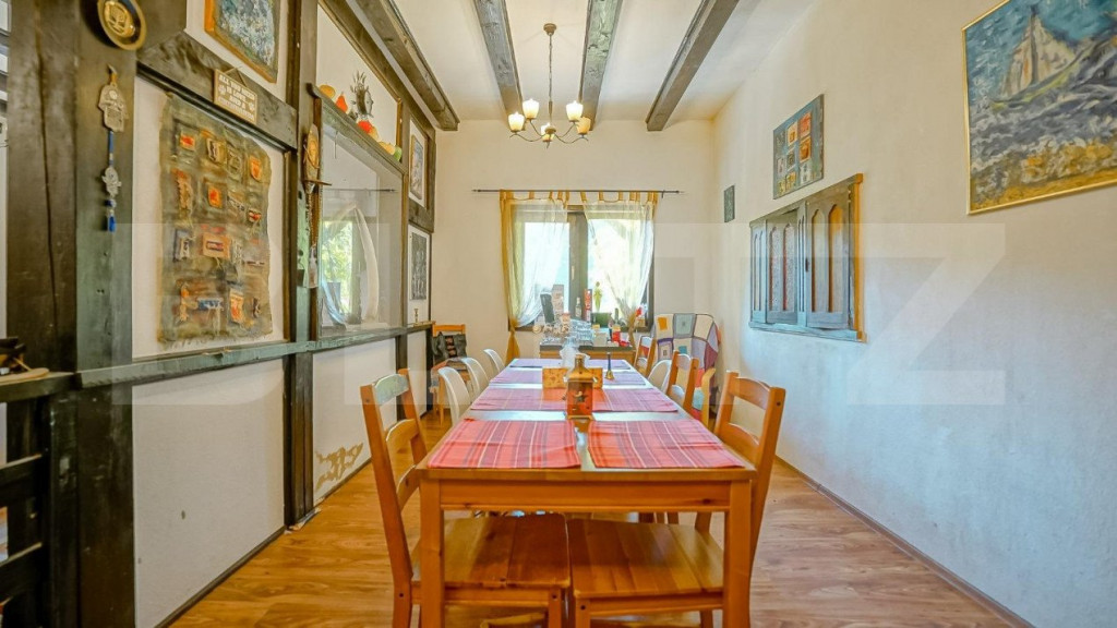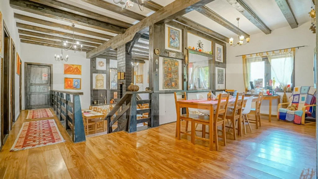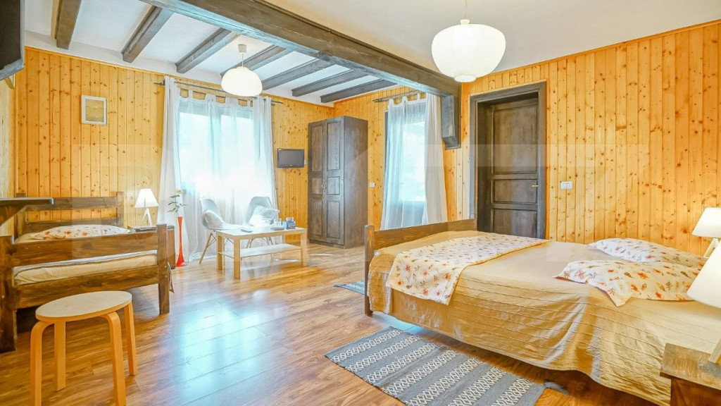 BLITZ propune spre vanzare o proprietate deosebita, amplasată într-o locație superbă, în Poiana Soarelui din cartierul Noua, Brașov . Casa este rezidentiala si te întâmpină cu o atmosfera de poveste care te cucerește încă din primele secunde cu un sentiment de căldură, de familiar și cu multă energie pozitivă. Localizată chiar în mijlocul naturii, proprietatea oferă o priveliște superbă asupra împrejurimilor, bucurându-se totodată de o deschidere generoasă la lacul din zonă. Proprietatea se desfășoară pe Parter + 2 Etaje + Mansardă, are o suprafață utilă totală de 623 mp si un teren aferent de 1.360 mp. Beneficiază de spații largi si aerisite, fiind compartimentată după cum urmează: Parter: birou, living/sala de mese, zonă mic dejun, lounge, bucătarie, baie, cameră cu baie plus 2 terase Etaj1: hol, 4 camere cu băi proprii și terase Etaj2: hol, 4 camere cu băi proprii și terase Mansardă: hol, 4 camere cu băi proprii 1 terasa Se vinde mobilată și utilată. Proprietatea și locația este versatilă și permite o utilizare multiplă, de la Pensiune Turistică, la casă de locuit, clinică, birouri, etc. Cod ofertă / ID BLITZ: P4422 Id intern: P4422