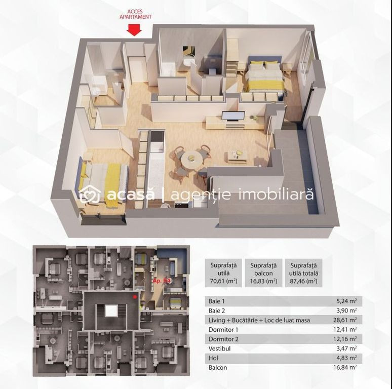 ✨ Apartamentul 54 din complexul R39 – cel mai nou proiect ARED, cu finalizare la 01.11.2026, te așteaptă să-l descoperi! Cu o arie construită de 104 mp, această locuință este alegerea ideală pentru un cuplu tânăr care își dorește un cămin spațios, luminos și confortabil. ???? Compartimentare: bucătărie practică, living generos și luminos, două dormitoare, două băi, balcon deschis pentru momente de relaxare. ???? Confortul termic este asigurat de centrala pe gaz și încălzirea în pardoseală, iar opțiunea de smart home îți permite să controlezi de la distanță funcțiile casei tale – simplu, eficient și modern. ???? Preț: 167,412 euro (TVA inclus) Nu rata șansa de a te muta într-un apartament nou, elegant și adaptat perfect stilului tău de viață! ???? Pentru detalii și vizionări: Andreea Szuchanszki – Consultant ARED Telefon: 0742 267 773 ARED – Casa ta, visul tău! Nu dispui de toată suma? Te ajutăm noi gratuit! Îți obținem oferte de la 16 bănci. Ai o proprietate de vânzare în Arad și vrei să știi cât valorează cu adevărat? Sună-mă pentru o evaluare gratuită, fără obligații. Birou: ACASĂ | Agenție imobiliară Arad Bulevardul Decebal 2, Arad 310133