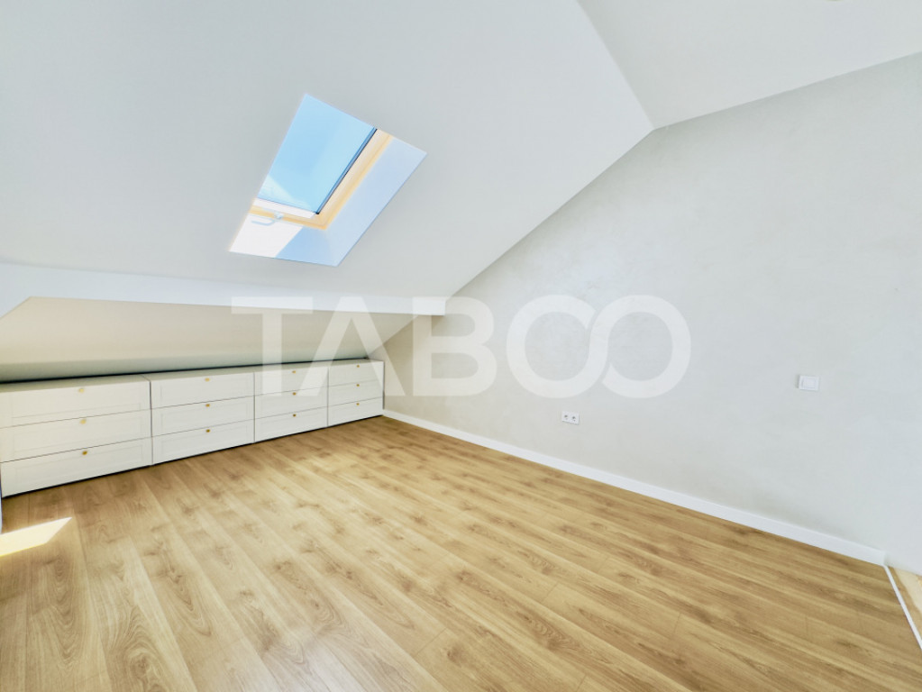 Penhouse 5 camere de vanzare, decomandat, 129 mp, zona Periferie, Sibiu, Comision 0%. Avantaje majore ale acestui penthouse: • Un loc de parcare inclus in pret • Living cu inaltime de 5.6 m • Pretabil investitie sigura • Parcare extra pentru vizitatori • Locatie ferita de aglomeratie • Orientare sudica • Amplasat intr-un ansamblu modern si aerisit, cu 45% spatii verzi TABOO Imobiliare propune un penthouse de vanzare cu 5 camere, decomandat, situat in localitatea Sibiu, zona Periferie, aflat la etajul 2 intr -un imobil tip vila cu regim de inaltime pe Parter + 2 Etaje; anul constructiei 2025, structura caramida. Suprafata utila de 129 mp + terasa de 15 mp. Apartamentul este structurat astfel: • Hol; • Bucatarie; • 3 Bai; • Living cu acces la terasa; • Dormitor cu acces la terasa; • 2 Dormitoare spatioase • 1 Birou Finisajele interioare sunt de lux: • Usa intrare: metal; • Usi interioare: celulare; • Tamplarie ferestre: pvc, termopan; • Pereti: vopsea lavabila, faianta; • Podele: parchet, gresie. Utilitati si dotari: • Bucatarie: nemobilata, neutilata; • Mobilat: nemobilat; • Utilitati: curent electric, apa, canalizare, gaz, catv, acces internet, fibra optica; • Izolatii: exterior, bloc izolat termic; • Contorizare: apometre, contor gaz, contor curent electric, contorizare separata; • Caracteristici casa/vila: interfon, acoperis, senzor de fum. Apartamentul se vinde nemobilat si neutilat, pozele afisate fiind cu titlu informativ, realizate intr-un apartament compartimentat identic, care deja a fost vandut. Incalzirea se realizeaza prin centrala proprie, incalzire pardoseala. Se accepta ca si modalitate de plata surse proprii sau credit bancar. Pret: 171.500€ Cod ofertă / ID: P25357 Sună-ne acum la 0369.822.820 și află detalii despre această proprietate de vanzare din Sibiu, dar și despre alte proprietăți potrivite pentru tine. Informatii speciale: 1. Descarcă aplicația pe mobilul tau "TABOO Imobiliare" din Apple Store, Google Play sau Huawei AppGallery pentru a afla instantaneu noile proprietăți care intră pe piață. 2. Dacă ai o proprietate pe care vrei să o vinzi sau să o închiriezi, suntem aici pentru tine! Contactează-ne pentru o evaluare gratuită fără obligații și vei descoperi avantajele de a lucra cu o echipă dedicată și experimentată. 3. Dacă vrei sa incepi o cariera de agent imobiliar, suna la 0369.822.820 si programeaza o intalnire pentru a afla toate beneficiile si avantajele. Intră pe TABOO.ro și descoperă cele mai recente oferte, actualizate zilnic. Anunt actualizat in 5 decembrie 2025. Id intern: P25357