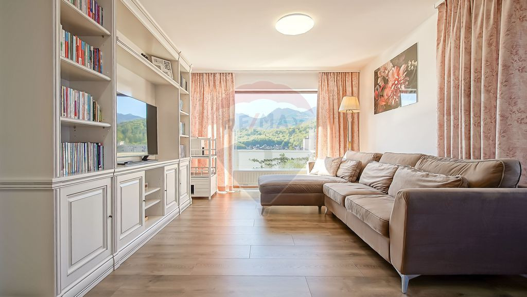 Iti prezint spre vanzare un penthouse deosebit, situat in zona Noua, la intrarea in Brasov dinspre Bucuresti – o locatie apreciata pentru liniste, aer curat si proximitatea fata de natura. Proprietatea, finalizata in 2019, dispune de o suprafata utila de 178 mp si este configurata in 5 camere, oferind spatiu generos si o compartimentare echilibrata, potrivita atat pentru locuire, cat si pentru adaptari ulterioare. Zona de zi este definita de un living impresionant de 45.5 mp, continuat armonios de bucataria deschisa, de 17.3 mp – un spatiu ideal pentru relaxare si socializare. Dormitorul matrimonial beneficiaza de baie proprie, dressing si acces catre balcon, oferind intimitate si confort. Celelalte dormitoare sunt, de asemenea, generoase si fiecare dispune de dressing separat. Proprietatea include 2 bai spatioase, iar grupul sanitar poate fi transformat cu usurinta intr-o baie functionala. Una dintre bai permite configurarea si cu cabina de dus pe langa cada existenta, un avantaj important pentru familii. La exterior, apartamentul impresioneaza prin terasa de 28 mp si cele doua balcoane (11.2 mp), cu orientare Est-Sud-Vest, oferind lumina naturala pe tot parcursul zilei si privelisti spectaculoase catre Tampa, Piatra Mare si imprejurimi. Unul dintre punctele forte ale proprietatii il reprezinta nivelul ridicat al finisajelor si atentia la detalii: internet pe fir si TV in toate camerele circuite separate pentru aer conditionat si instalatii pregatite inclusiv pentru terasa prize dedicate pentru panouri radiante si instalatii suplimentare instalatii electrice gandite complet, inclusiv pentru veioze si prize in toate zonele, inclusiv bai tamplarie cu protectii anticondens si geam tripan in dormitorul matrimonial folie UV pentru zona de terasa si plase de insecte in toate camerele parchet premium MAMMUT si plinta din polimer vopsibila scafe duble din aluminiu pentru perdele si draperii jaluzele exterioare cu intrerupatoare dedicate pentru terase usa de intrare finisata in doua culori Pozitionarea este unul dintre cele mai mari avantaje: inconjurat de padure si situat la doar cateva minute de Lacul Noua, Parc Aventura si multiple zone de recreere, dar in acelasi timp aproape de toate facilitatile urbane – scoli, gradinite, transport public si centre comerciale. Accesul catre centrul orasului este facil, zona fiind una dintre cele mai aerisite din Brasov din punct de vedere al traficului. Un alt avantaj important este flexibilitatea proprietatii, existand posibilitatea de recompartimentare, inclusiv in doua unitati independente sau configuratii personalizate. Separat, se pot achizitiona: loc de parcare intabulat – 10.000 euro boxa de depozitare de 16 mp, din caramida, cu aerisire naturala – 20.000 euro Mobila de bucatarie si electrocasnicele sunt incluse in pret, restul mobilierului fiind disponibil contracost. Pentru detalii suplimentare si programarea unei vizionari, va stau cu drag la dispozitie!