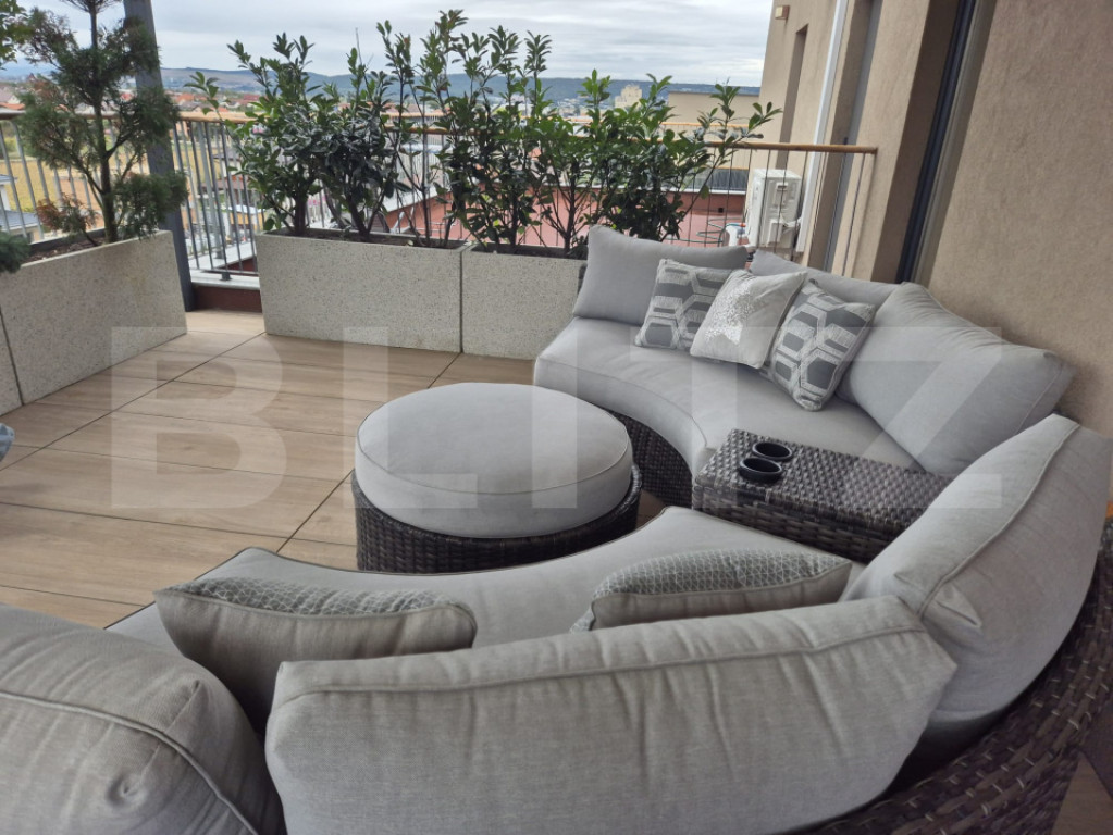 Blitz itivpropune sa descoperi rafinamentul unui penthouse spectaculos pe două niveluri, situat într-un bloc nou, într-una dintre cele mai apreciate zone din Târgu Mureș – Uni Compartimentare: Parter: -Living elegant cu șemineu funcțional -Bucătărie modernă complet utilată, cu zonă de dining -Dormitor matrimonial cu dressing generos -Baie spațioasă cu cadă -Spațiu de depozitare -Terasă panoramică Etaj: -Două camere luminoase, ideale pentru dormitor, birou sau hobby room -Baie modernă -Terasă privată cu jacuzzi și zonă de relaxare Detalii și dotări: -Mobilier și finisaje premium -Design contemporan, echilibrat și funcțional -Șemineu, jacuzzi, dressing, spații de depozitare -Parcare privată inclusă -Suprafață generoasă și priveliște superbă Locație: Zona Unirii – acces facil către centrul orașului, magazine, școli, zone verzi. Preț: 1.280 €/lună Perfect pentru cei care apreciază confortul, intimitatea și eleganța unui spațiu de top. Pentru detalii și vizionare astept sa ne contactati! Cod ofertă / ID BLITZ: P157327 Id intern: P157327
