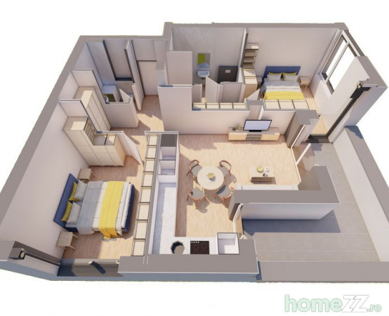✅ 2 dormitoare + 2 bai – Spațiu optim pentru confort și intimitate.