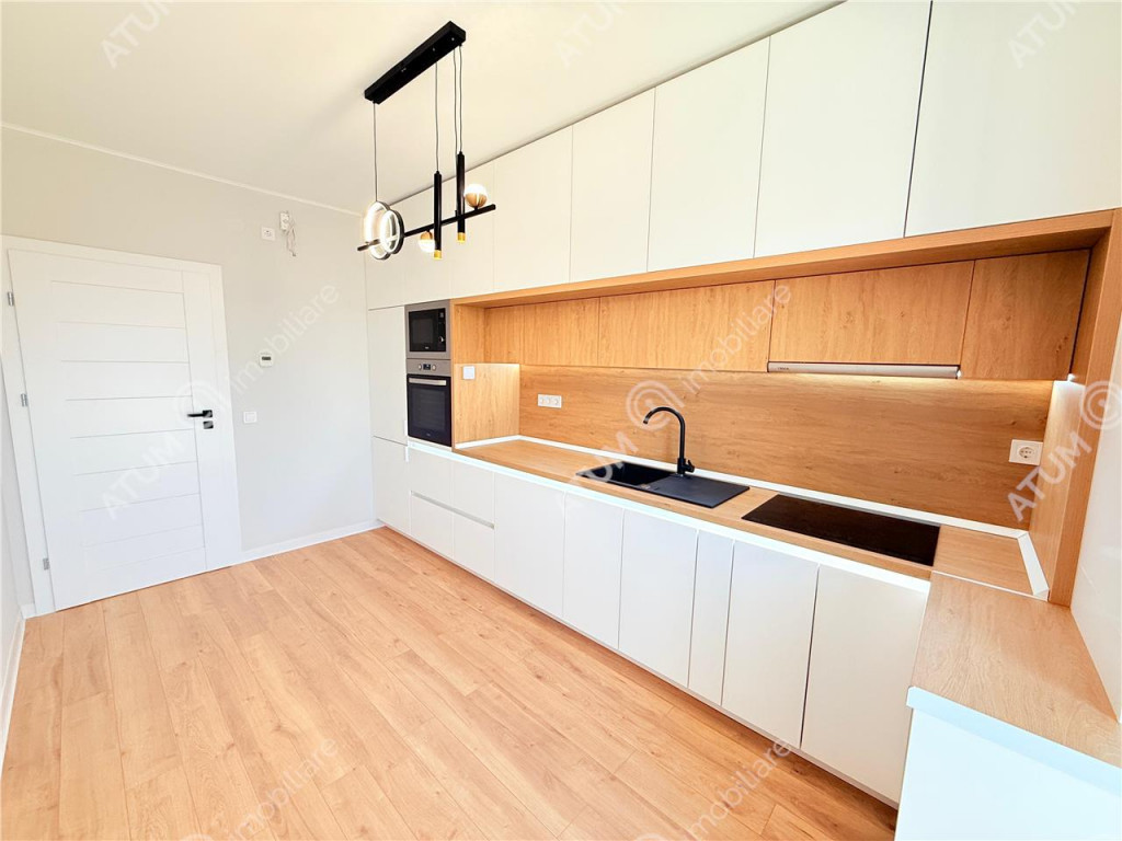 Va propunem spre vanzare un apartament tip penthouse cu 3 camere, situat la etajul 2 al unei vile moderne compuse din doar 10 apartamente, un imobil finalizat in anul 2025 si conceput pentru a oferi confort, intimitate si o calitate superioara a vietii. Etajul 2 este compartimentat in doar 4 apartamente, ceea ce confera un grad ridicat de exclusivitate si liniste, iar imobilul este amplasat intr-o zona rezidentiala cu acces rapid catre strada Mihai Viteazu si facilitatile urbane din apropiere. Apartamentul are o suprafata utila de 85 mp, configurata armonios pentru a satisface cerintele unei familii care apreciaza spatiile bine gandite. Zona de zi cuprinde un living spatios de 23 mp, luminat natural si cu acces direct pe terasa, precum si o bucatarie inchisa de 11.44 mp, cu acces separat pe terasa, oferind functionalitate si intimitate in utilizarea spatiului. Zona de noapte este formata dintr-un dormitor matrimonial cu baie si dressing propriu si acces pe terasa, si un al doilea dormitor potrivit pentru copii, birou sau oaspeti. Holul principal este spatios si permite amenajarea unui pantofar si a unei zone de cuier. Suprafata exterioara generoasa reprezinta unul dintre atuurile majore ale proprietatii. Apartamentul dispune de o terasa spectaculoasa de 40 mp, cu o panorama catre Muntii Fagaras si Dealul Daii, un spatiu ideal pentru relaxare, zona de dining in aer liber sau amenajare decorativa, intr-un cadru deschis si neobturat de constructii invecinate, datorita regimului redus de inaltime al cladirilor din zona. Apartamentul este finalizat la stadiul de cheie si beneficiaza de dotari si finisaje moderne. Usa metalica de acces este prevazuta cu panou MDF, peretii sunt tencuiti pe baza de var si ciment, gletuiti si zugraviti in lavabila alba si gri, iar pardoselile sunt finisate cu parchet SPC de 10 mm in nuanta stejar, gresie si faianta de calitate. Usi interioare din MDF marca Naturen si obiecte sanitare suspendate completeaza standardul de finisare. Sistemul de incalzire este realizat prin pardoseala marca Purmo, cu termostatare individuala in fiecare incapere, alimentata de o centrala termica pe gaz in condensare marca Vailant Ecotec, cu putere de 24 kW pentru incalzire si 28 kW pentru apa calda. Apartamentul are sistem de climatizare, avand instalatie si aparat de aer conditionat de 12000 BTU deja montat. Dotarile tehnice includ tamplarie PVC cu 7 camere si geam tripan marca Kommerling, instalatie electrica din cupru trasa prin copex, tablou general cu sigurante automate pentru consumatorii de putere, interfon si instalatii pregatite pentru rulouri exterioare. Proprietatea beneficiaza de doua locuri de parcare private, unul pentru fiecare autovehicul al familiei, ambele delimitate si inscriptionate. Valoarea locuintei este de 200.000 euro la stadiul de cheie cu tva de 21% inclus, mobilierul nu este inclus in pretul de vanzare, se poate achizitiona si prin intermediul unui creit ipotecar, apartament 7. ID intern: 3329.