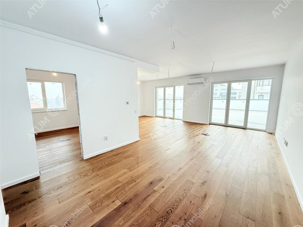 Va propunem spre vanzare un apartament tip penthouse situat in Selimbar, zona Doamna Stanca, amplasat la etajul 7 al unui imobil modern finalizat in anul 2025, intr-o zona rezidentiala noua, cu acces rapid catre centre comerciale, scoli, gradinite si principalele artere de legatura cu municipiul Sibiu. Pozitionarea la ultimul nivel ofera un avantaj major prin privelistea deschisa catre oras si prin distanta generoasa fata de cladirile invecinate, asigurand intimitate, lumina naturala si o panorama spectaculoasa atat ziua, cat si seara. Apartamentul are o suprafata utila de 111 mp si este in curs de amenajare interioara, urmand a fi predat la stadiul de cheie, cu toate finisajele incluse. Spatiul este gandit pentru confortul unei familii care apreciaza suprafetele ample si compartimentarea eficienta. Zona de zi este reprezentata de un living generos cu bucatarie open space in suprafata de 44.5 mp, un spatiu aerisit si luminos, ideal pentru petrecerea timpului in familie sau pentru socializare. Zona de noapte include trei dormitoare bine proportionate, doua bai complet echipate si un hol generos care asigura o circulatie fluida intre incaperi. Unul dintre punctele forte ale proprietatii este terasa impresionanta de 78 mp, care extinde considerabil spatiul de locuire si ofera posibilitatea amenajarii unei zone de relaxare, dining exterior sau chiar a unui spatiu verde suspendat. In completare, apartamentul beneficiaza de un balcon de 10 mp cu acces din dormitoare, oferind un plus de confort si functionalitate. Finisajele si dotarile sunt alese in acord cu standardele actuale de confort. Apartamentul dispune de usa metalica de acces, pereti tencuiti, gletuiti si zugraviti in lavabila, tamplarie PVC cu profil din 7 camere si trei foi de sticla pentru eficienta termica si fonica sporita, instalatie electrica cu curent trifazic, tablou electric cu sigurante automate pentru consumatorii de putere, prize si intrerupatoare montate. Sistemul de incalzire este realizat prin pardoseala, cu centrala termica proprie pe gaz si termostatare individuala pentru fiecare camera. In plus, este instalat un sistem de aer conditionat multisplit marca Midea, cu doua unitati de 24000 btu, asigurand climatizare eficienta in sezonul cald. Usi interioare marca Naturen, parchet Vicla si bai complet echipate completeaza standardul de calitate al locuintei. Proprietatea beneficiaza de doua locuri de parcare incluse in pret, unul situat in parcarea subterana a imobilului si unul suprateran, oferind confort si siguranta. Imobilul este dotat cu lift modern, acces securizat si spatii comune bine intretinute, iar zona este in continua dezvoltare, cu infrastructura moderna si facilitati urbane la indemana. Valoarea apartamentului este de 244.000 euro tva, se poate achizitiona si prin intermediul unui credit ipotecar. ID intern: 3147.