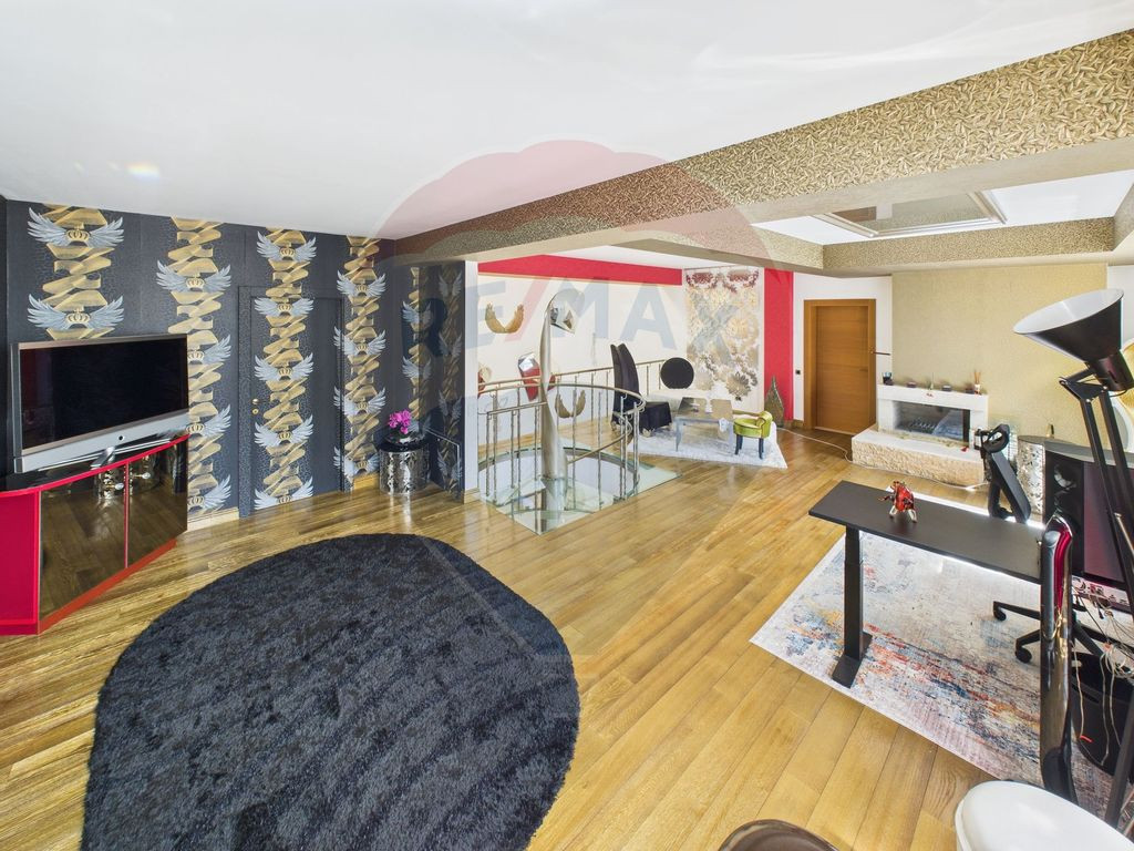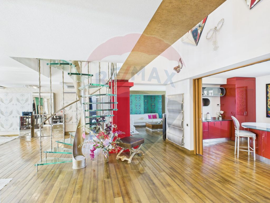 PENTHOUSE CU PISCINA ACOPERITA SI TERASA DE 254 MP – EXPERIENTA DE VIATA LA NIVEL PREMIUM Daca iti doresti un spatiu care sa iti ofere intimitate, privelisti spectaculoase si un stil de viata aparte, acest penthouse poate fi exact ce cauti. Terasa de 254 mp devine rapid locul preferat pentru seri relaxante sau intalniri cu prietenii, iar piscina acoperita si incalzita iti permite sa te bucuri de momente de rasfat indiferent de sezon. Proprietatea ofera 310 mp utili, impartiti inteligent pe doua niveluri (etajele 4 si 5) intr-un imobil S+P+5, construit in 2007 si renovat complet in 2015. Interiorul imbina finisajele de calitate – marmura, sticla securizata, detalii din fier forjat – cu un design gandit pentru confort si functionalitate. Construit pentru siguranta si eficienta Structura solida: stalpi si pereti din beton armat, plansee monolite si pereti suplimentari de rezistenta. Expertiza tehnica seismica cu punctaj maxim. Izolatie premium: polistiren extrudat 10 cm la exterior, vata de sticla intre etaje si in peretii interiori. Certificat energetic clasa A, pentru consum redus si confort termic. Instalatie electrica trifazica dedicata pentru apartament, terasa si sistemul de climatizare multi-split. Centrala proprie si trei seminee placate cu marmura, pentru atmosfera si confort. Detalii care fac diferenta Scara interioara realizata pe comanda, din fier forjat si sticla laminata securizata. Acces securizat: usa metalica, yala inteligenta cu cod, sonerie video 2K cu senzori de miscare si notificari pe telefon. Loc de parcare in subteran, cu posibilitatea de a achizitiona locuri suplimentare. Acest penthouse nu se adreseaza celor care cauta doar o locuinta, ci celor care isi doresc un spatiu cu identitate, unde tehnologia, siguranta si stilul se imbina cu lumina, linistea si libertatea de a trai la inaltime. Disponibil pentru vizionare. Daca iti doresti un stil de viata care sa inspire, merita sa il vezi.