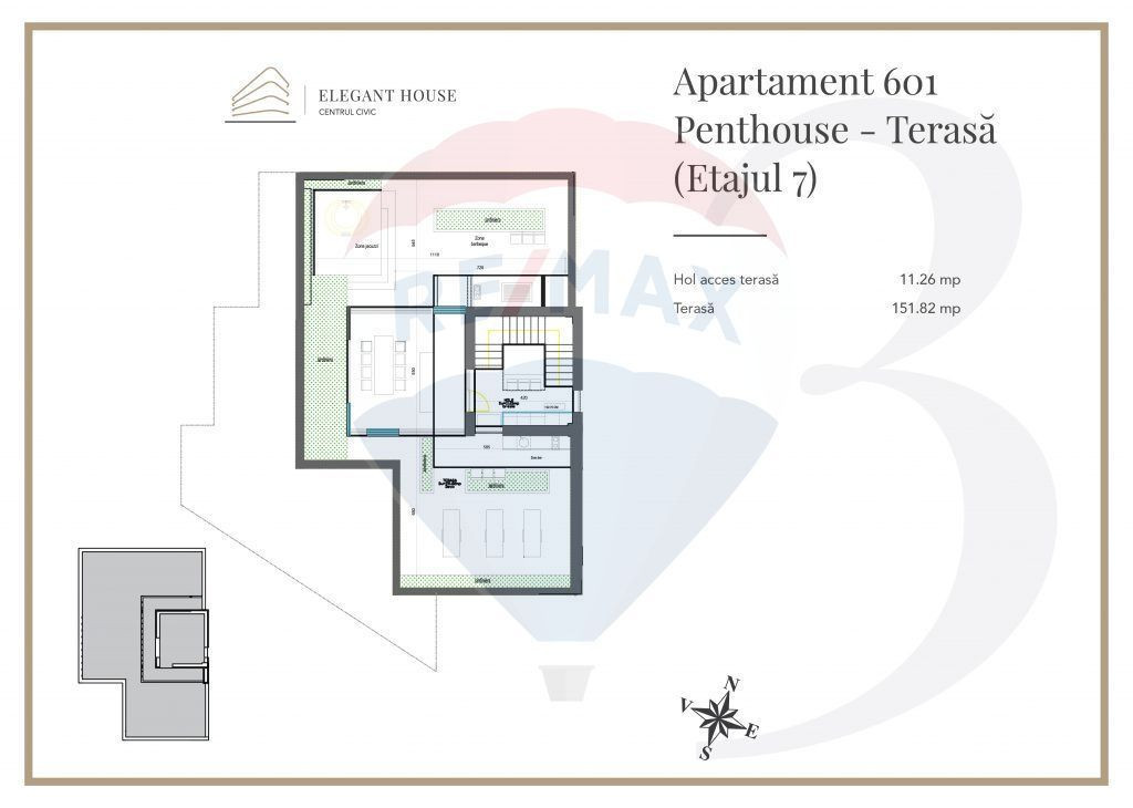 Cu o locație de excepție, pe Bulevardul 15 Noiembrie nr. 71-73, Elegant House redefinește standardele locuirii urbane moderne. Situat în inima Centrului Civic, la doar câțiva pași de AFI Palace Brașov, proiectul oferă un echilibru perfect între dinamismul vieții centrale și confortul unei locuințe contemporane. Destinat atât celor care își doresc un cămin elegant într-o zonă premium, cât și investitorilor interesați de conceptul buy-to-let, Elegant House impresionează prin designul său inovator și calitatea execuției. Proiectul are un regim de înălțime S+P+6E și cuprinde 15 apartamente spațioase și luminoase, cu o funcționalitate atent gândită. Parterul este dedicat spațiilor comerciale cu acces direct din exterior, iar subsolul include parcări auto pe platforme hidraulice marca Klauss Parking, spațiu pentru biciclete și adăpost ALA. Piesa de rezistență a ansamblului este spectaculosul penthouse care ocupă întregul etaj 6. Acesta impresionează printr-un design contemporan, finisaje premium și o compartimentare excepțională: Nivel principal: 106,36 mp utili, cu o zonă de zi generoasă, dining, toaletă pentru oaspeți, două dormitoare – fiecare cu baie și dressing propriu – și o terasă superbă de 116,40 mp. Nivel superior: o terasă panoramică de 165 mp, orientată spre est-sud-vest, oferind priveliști uimitoare asupra orașului Brașov. Aceasta este complet echipată pentru relaxare și socializare: zonă de bar, barbeque, jacuzzi, baldachin și lounge. Înălțimea liberă a apartamentelor este de 2,70 m, iar penthouse-ul se remarcă prin înălțimea de 3 m, amplificând senzația de spațiu și lumină. Accesul în locuință este direct din lift, oferind un nivel suplimentar de intimitate și exclusivitate. Cu o suprafață totală de 386 mp, acest penthouse reprezintă o veritabilă reședință urbană de lux, un spațiu unde eleganța, confortul și priveliștile spectaculoase se îmbină perfect. Preț: 565.000 Euro + tva