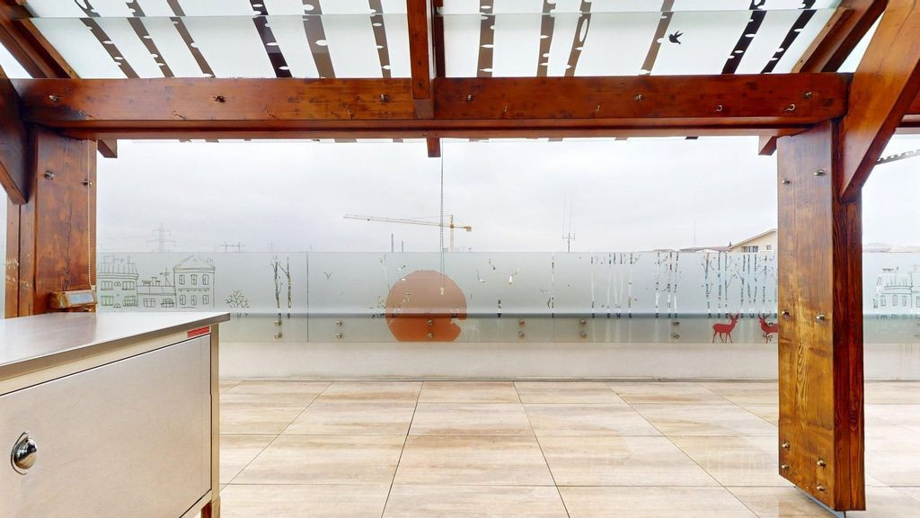 Terasă cu pardoseală flotantă pe ploturi, finisată cu ceramică premium, perfectă pentru cafeaua ta preferată, pentru seri cu prietenii sau pur și simplu pentru a privi orașul în liniște.