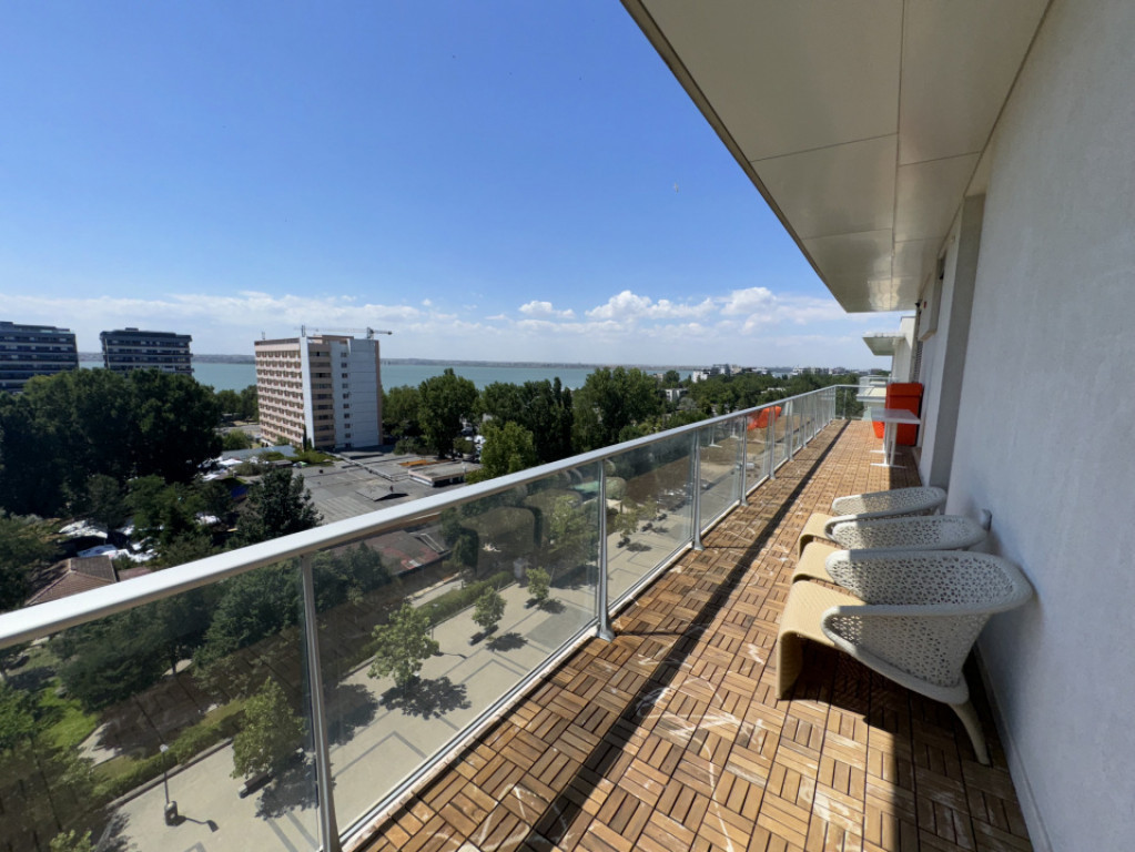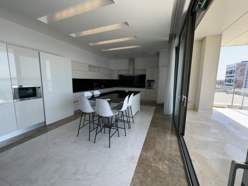 Situat pe cea mai înaltă poziție a clădirii, acest apartament ocupă o suprafață utilă de 353 mp, la care se adaugă trei terase impresionante (156 mp), oferind o vedere panoramică de 360° către Marea Neagră și Lacul Siutghiol – o adevărată scenă naturală ce încadrează perfect viața de lux la malul mării.