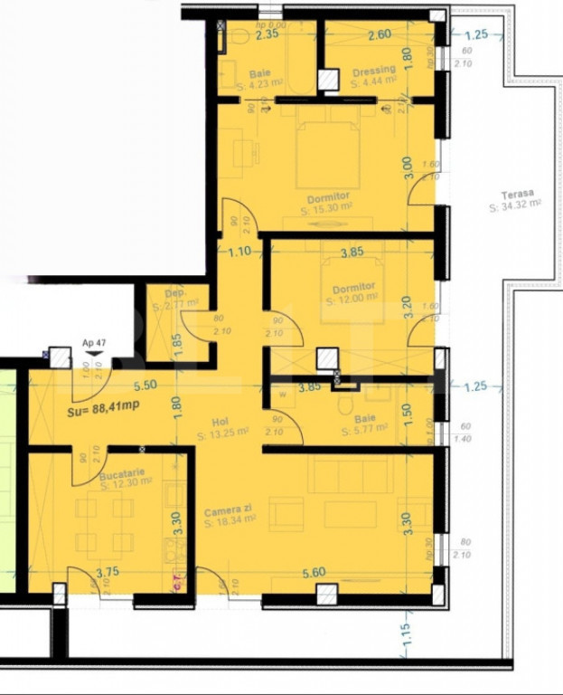 Blitz vă propune spre achiziție un Penthouse situat la Etajul 5 din 5, definit prin spații generoase, finisaje de top și o vedere panoramică asupra orașului. Configurație de Lux (Suprafață Utilă: 88.41 mp + Terasă) Zona de zi: Camera de zi luminoasă (18.34 mp) cu acces direct pe terasă. Bucătărie separată: 12.30 mp, ideală pentru un design modern cu insulă. Dormitor Matrimonial: 15.30 mp, dotat cu Dressing propriu (4.44 mp) și Baie privată (4.23 mp). Dormitor secundar: 12.00 mp, perfect pentru copii sau birou. Baie principală: 5.77 mp. Spații tehnice: Hol vast (13.25 mp) și o Depozitare/Cămară separată (2.77 mp). Terasa spectaculoasă: 34.32 mp care înconjoară apartamentul, oferind un spațiu unic de relaxare. Opțiuni Parcare (se achiziționează separat) Loc de parcare Suprateran: 7.000 Euro + TVA Loc de parcare Subteran: 10.000 Euro + TVA De ce să alegi acest Penthouse? Intimitate maximă: Situat la ultimul etaj, fără vecini deasupra. Terasa uriașă: Un atu rar întâlnit, echivalentul unei grădini suspendate. Compartimentare completă: Include toate elementele unei locuințe premium (dressing, 2 băi, debara). Finalizare 2026: Proiect modern, construit la standarde energetice ridicate. Preț Penthouse: 190.500 Euro + TVA. Va asteptam cu drag la o vizionare! Cod ofertă / ID BLITZ: P164216 Id intern: P164216