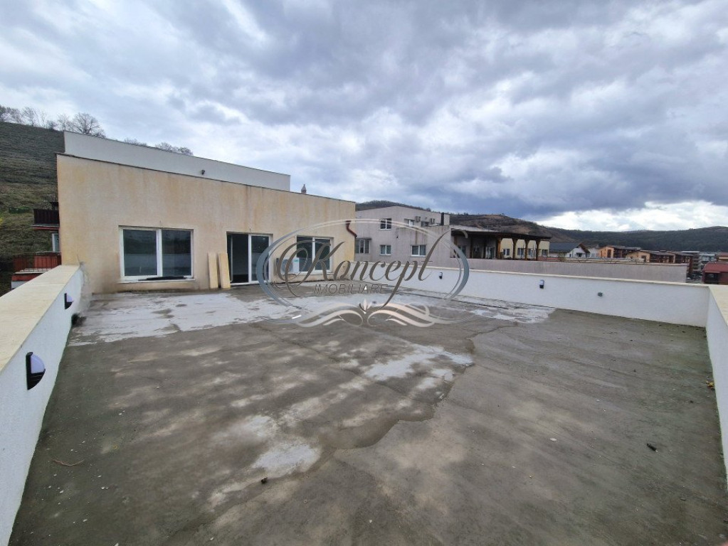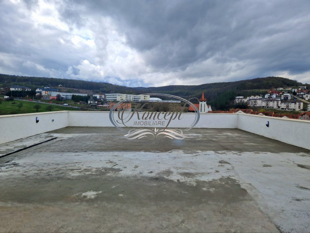 Koncept Imobiliare va ofera spre vanzare un penthouse cu 4 camere, situat pe strada Stejarului, Floresti. Imobilul, in suprafata utila de 161.09 mp, este situat la etajul 3 retras al unui imobil cu regim de inaltime D+P+2+2R si este compartimentat astfel: hol, bucatarie open space cu loc de luat masa, living generos cu iesire pe terasa, 3 dormitoare spatioase, 2 bai cu geam, un spatiu de depozitare, o terasa impresionanta de 143.72 mp si 2 balcoane ce insumeaza aproximativ 28 mp. Proprietatea iese in evidenta prin suprafata generoasa, calitatea materialelor si investitiile realizate pentru un confort sporit. Confortul termic este asigurat de sistemul de incalzire in pardoseala UPONOR cu instalatie separata pe fiecare incapere, centrala termica proprie VIESSMANN de ultima generatie si o instalatie de aer conditionat. Apartamentul se preda la stadiul de finisat, avand peretii placati cu rigips hidro, pereti zugraviti in alb, izolatie cu vata bazaltica pentru protectie fonica si termica atat pe peretii exteriori, cat si pe tavan, sapa din THERMOBETON cu granule de polistiren cimentat pentru o izolatie de exceptie a pardoselii, ferestre termoizolante din PVC REHAU si instalatii sanitare si electrice schimbate integral. Datorita compartimentarii eficiente, terasei generoase si dotarilor de inalta calitate, acest penthouse reprezinta o alegere ideala pentru persoanele care cauta spatiu, intimitate si confort. Proprietatea se afla intr-o zona linistita, dar bine conectata la puncte de interes cotidian, cum ar fi mijloace de transport in comun, supermarketuri, diverse magazine, scoli, gradinite, sali de fitness, spatii verzi si parcuri cu locuri de joaca pentru copii. Pentru informatii suplimentare, programarea unei vizionari sau pentru a va prezenta oferta noastra completa, nu ezitati sa ne contactati telefonic, prin e-mail sau la sediul agentiei noastre de pe str. Aviator Badescu nr. 19, Cluj-Napoca. Id intern: P20357