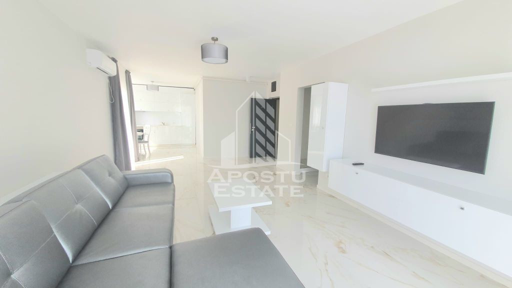 Apostu Estate va propune spre inchiriere un apartament premium tip penthouse, cu 3 camere, situat intr-un bloc nou, intr-o zona exclusivista a orasului Arad. Locuinta se afla la un etaj superior, intr-un imobil modern cu 2 lifturi, oferind confort, spatiu generos si o terasa spectaculoasa. Este alegerea ideala pentru cei care isi doresc o locuinta luminoasa, eleganta si complet echipata, aproape de natura, dar si de centrul orasului. Caracteristici: Suprafata utila: 90 mp Terasa impresionanta de 56 mp 3 camere: living generos si 2 dormitoare Bucatarie complet echipata (frigider incorporabil, congelator, plita, cuptor, hota, masina de spalat vase incorporabila, cuptor cu microunde) Masina de spalat rufe Mobilat modern, finisaje premium Clasa energetica A Etaj 6/7, bloc dotat cu 2 lifturi Nu se accepta animale de companie Un apartament ideal pentru persoane care cauta liniste, stil si confort intr-o locatie deosebita. Pentru mai multe detalii si vizionari, nu ezitati sa ne contactati! ID- CP2503208