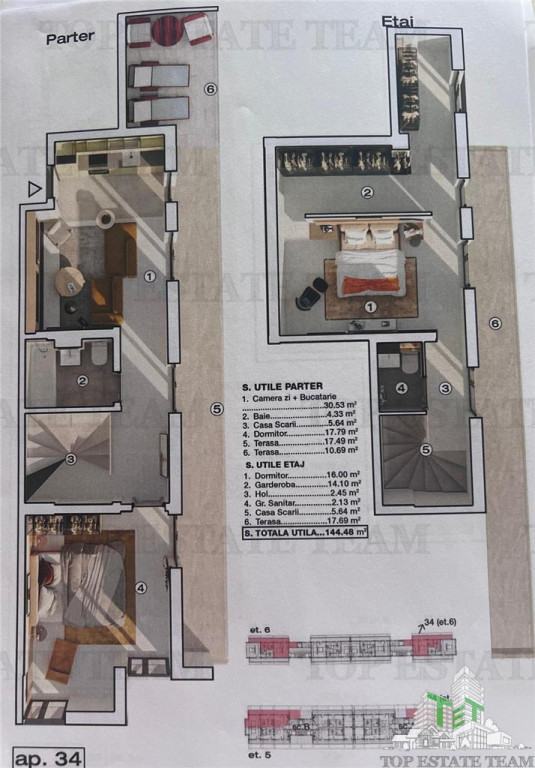 Excelenta prin experienta! Noi nu vindem francize, noi vindem proprietati... si o facem pe 5 continente ! Va propunem spre vanzare un Penthouse cu camere, modern, situat in cel mai nou si modern complex rezidetial din orasul Bragadiru, Prelungire Ghencea, Cartierul Latin, Granita de Bucuresti , amplasat intr-o zona superba si linistita, dar cu acces imediat catre Centrul Bucurestiului si catre Linia de Cenura. Un Complex rezidential nou, iar imediat in vecinatate; terenuri de sport, terenuri de tenis,locuri de joaca pentru copii,spatii verzi de relaxare, supermarket, sala de fitnes, fast food, clinici medicale,scoli, gradinite si multe alte facilitati in vecinatate, necesare unui trai modern si sigur . Apartamentul are o suprafata de 144.48 mp cu 3 terase incluse cu o suprafata totala de 45.87 mp,unde va puteti bucura la un pahar de vin bun sub cerul instelat si diferite activitati ,imediat ce ajungeti acasa, dupa o zi lunga de munca, incantandu-va de privelistea din jur. Apartamentul se preda cu toate finisajele incluse: bai echipate complet cu wc-uri incastrate, usi, parchet, gresie, faianta, prize si intrerupatoare. Apartamentele vin cu centrala proprie, incalzire in pardoseala si distribuitoare Ferro. Blocurile dispun de lift. Complexul beneficiaza de un loc de joaca de 150 mp. Compartimentarea inteligenta, dezvoltarea unei constructii de calitate si sutele de familii multumite de locuintele livrate pana acum. Utilitati : canalizare, apa, gaze,curent electic, internet de mare viteza, fibra optica. Proprietatea se vinde pentru suma de 170000 EURO la care se adauga TVA.. comisionul este standard TVA Loc de parcare acoperit si disponibil. RANDARILE SUNT PENTRU REFERINTA Oferim consultanta gratuita si facilitarea obtinerii rapide a creditului ipotecar, cu dobanda foarte buna si rate fixe pentru 5 ani, fara costuri ascunse! Asiguram consultanta juridica si consultanta financiara permanenta ! Oferta apartine companiei TOP ESTATE TEAM ! ID intern: TET0021098 Beneficiaza de serviciile TET: Oferte internationale in peste 15 tari (Cipru, Grecia, Muntenegru, Regatul Unit, Dubai...) Servicii de asigurari Evaluari Autorizate ANEVAR Servicii Property Management De peste 15 ani alaturi de tine! .