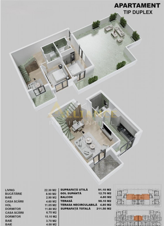 Penthouse deosebit cu terasa spectaculoasa de 106 mp La doar 5min de metrou Berceni Descopera un penthouse modern si elegant, situat pe etajele 7 8, perfect pentru cei care isi doresc spatiu, confort si o locatie excelenta. Cu o suprafata utila de 91 mp si o terasa impresionanta de 106 mp, aceasta proprietate ofera un stil de viata premium, ideal atat pentru locuit, cat si pentru investitie. Compartimentare inteligenta: 2 dormitoare matrimoniale living generos si luminos bucatarie inchisa 3 bai moderne terasa panoramica de 106 mp Finisaje si dotari premium: incalzire in pardoseala centrala termica proprie aer conditionat inclus obiecte sanitare complete in bai prize si intrerupatoare montate contorizare individuala Localizare excelenta: La doar 400 m de Pasarela Berceni si aproximativ 5 minute de mers pe jos pana la Statia de metrou Berceni. Pretul afisat include TVA. Pentru detalii si vizionari: 0754 993 019