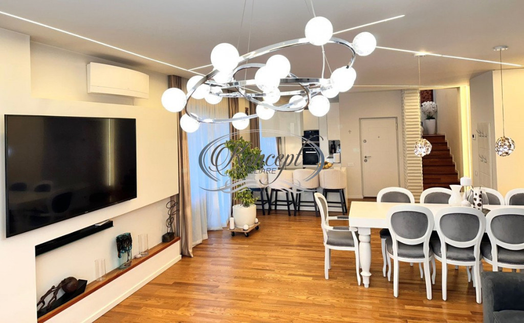 Koncept Imobiliare va ofera spre vanzare un Penthouse spectaculos in cartierul Buna Ziua. Acesta este situat la ultimele 2 etaje (retrase) ale unui imobil nou, are suprafata utila de 176,5 mp + 3 terase ce insumeaza o suprafata de aproximativ 245 mp si 2 balcoane ce insumeaza 15 mp. Apartamentul este compartimentat astfel: primul nivel- living generos open space cu bucataria si loc de servit masa, 3 dormitoare, 3 bai, dressing (transformat dintr-o camera), hol si terasa de 100 mp, cu acces din toate camerele; nivelul 2- 2 camere, una amenajata ca sala de sport, iar cealata este camera de hobby cu masa de biliard, 2 terase amenajate cu mobilier si plante. Accesul in apartament se poate face atat cu liftul la ambele niveluri, cat si pe scari. Spatios si luminos, cu o compartimentare avantajoasa si orientare excelenta, retras de la strada principala, ofera o panorama foarte frumoasa spre oras, beneficiind in acelasi timp de liniste si intimitate. Apartamentul se remarca prin armonia spatiilor gandite in detaliu, imbinand frumosul cu utilul intr-un mod simplu, dar placut si foarte primitor, oferind personalitate si intimitate. Calitatea finisajelor, a mobilierului si aparaturii vin doar sa completeze confortul oferit. De asemenea, in pret este inclus si un garaj subteran individual de 29 mp, pentru 2 masini cu CF separat, o boxa si 2 locuri de parcare exterioare. Se recomanda datorita locatiei foarte bune, a teraselor si spatiului generos, dar si al panoramei frumoase si intimitatii pe care o ofera. Pentru informatii suplimentare, pentru programarea unei vizionari sau pentru a afla oferta noastra completa nu ezitati sa ne contactati telefonic, prin e-mail sau la sediul agentiei noastre, pe str. Aviator Badescu nr. 19, Cluj-Napoca. Id intern: P19924
