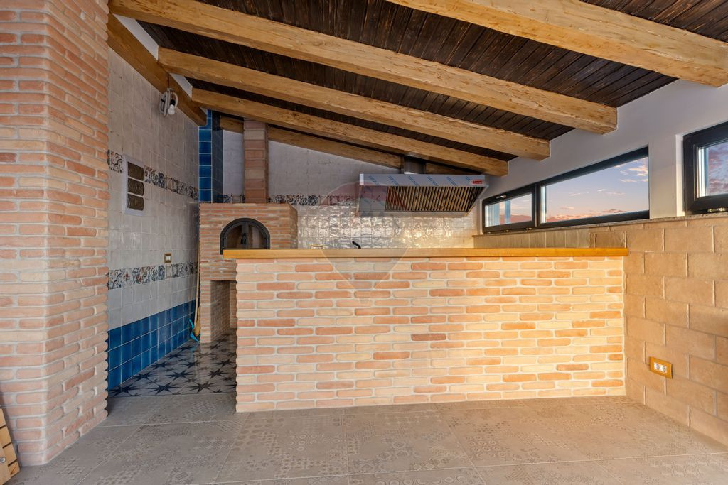 Zonă interioară: bucătărie italiană complet utilată, cu cuptor de pizza și dotări premium