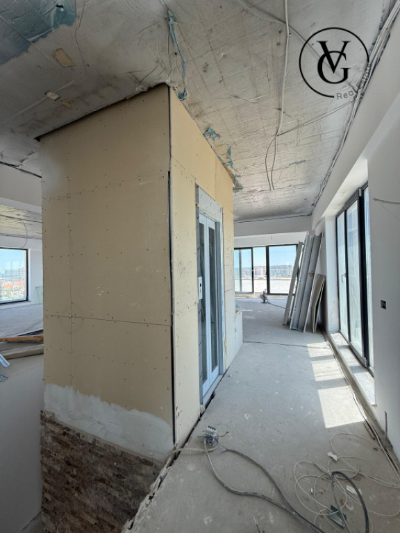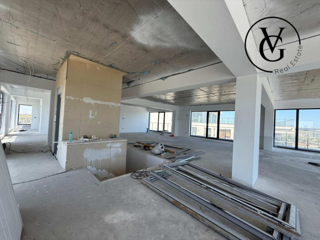 Amplasat la etajul 6 al unui imobil nou cu regim de înălțime P+6, penthouse-ul beneficiază de vedere panoramică spre lac și mare, într-un cadru aerisit, ideal pentru cei care caută intimitate și liniște. Suprafața utilă totală este de 487.97 mp, dintre care 252.21 mp reprezintă o terasă circulabilă amplă, cu acces direct din zona de zi. Este un spațiu cu un potențial excelent de amenajare – zonă de lounge, dining în aer liber, jacuzzi, spațiu de joacă pentru copii sau grădină urbană, toate într-un cadru deschis, cu priveliște și lumină naturală din plin.