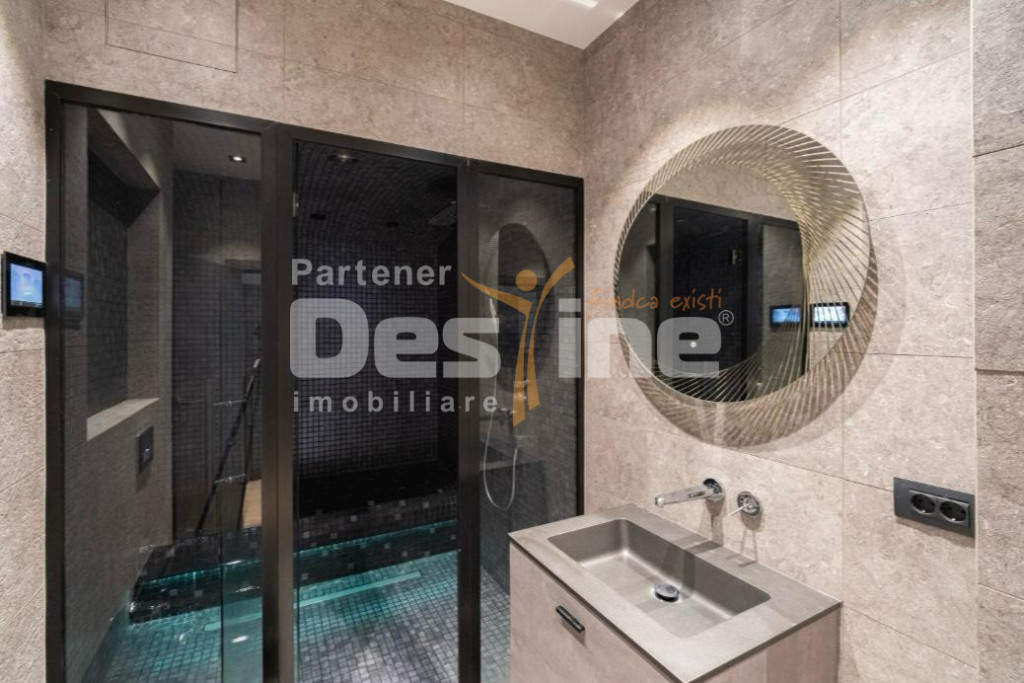 Vǎ prezentăm un penthouse de lux, situat în complexul rezidențial exclusivist Laguna Residence, cu o priveliște spectaculoasă spre Lacul Tei și Parcul Tei. Cu o suprafață utilă de 263 mp, plus o terasă de 165 mp, acest apartament oferă un stil de viață rafinat și un confort deosebit, în mijlocul unei locații premium, aproape de Hotelul Caro, Mall Promenada și stațiile de metrou Pipera și Aurel Vlaicu. Detalii Apartament: Suprafață utilă: 263 mp utili Terasă: 165 mp cu pergolă retractabilă de 100 mp și senzori de vânt, jardiere laterale pentru intimitate cu vecinii, înalte de 2,5 m cu sistem automat de aspensoare, dus solar, pardoseala flotanta, lumini ambientale. Orientare spre sud. Balcoane: 2 balcoane de 5 mp fiecare Parcare: 2 locuri subterane 25.000 euro/loc Suprafață totală: 438 mp utili / 540 mp construiți Împărțirea spațiului: Living: 122 mp, cu o cortină de sticlă de 15 m liniari și priveliște directă spre lac, având 2 geamuri mari (7 m lungime, 2,2 m înălțime), cu acces direct pe terasa de 165 mp Dormitoare: 3 dormitoare (22 mp, 20 mp, 15 mp), o camera este făcută dressing Bucătărie: 20 mp, complet utilată și mobilată cu electrocasnice de ultimă generație (plită pe inducție și gaz, cuptor, microunde, teppanyaki, hotă, mașină de spălat vase, frigider-congelator) Baie principală: 9 mp, dotată cu duș și hammam Baie secundară: 8 mp, cu cadă Wc serviciu: 3 mp Camera tehnică: 9 mp, dotată cu chiuvetă de serviciu, mașină de spălat rufe, mobilier de depozitare Holuri: 25 mp, cu scafe de lumină ambientală LED RGB în toate camerele Facilități și dotări premium: Sistem Smart Home KNX: Control complet al luminii, temperaturii, jaluzelelor și sistemului de muzică prin aplicație mobilă Încălzire în pardoseală: Cu termostate Nest pentru un control optim al temperaturii Aer condiționat centralizat: 2 compresoare de 28.000 BTU fiecare, pentru răcire eficientă Sisteme de securitate: Camere de supraveghere, alarmă Materiale de calitate superioară: Pereți despărțitori și perimetrali dublu plăciți, cu materiale fonoabsorbante pentru un confort acustic superior Jaluzele exterioare: Warema, pentru controlul luminii și intimității Electrocasnice Miele și finisaje de top (parchet Bauwerk, Terrazzo Aragon, tamplărie aluminiu de la Reynaers) Facilități complex: Securitate: Acces cu 2 bariere, pază 24/24 Parc de 5000 mp: Alei promenade, loc de joacă pe malul lacului Piscine exterioare: 2 piscine, pentru relaxare și recreere Parcare vizitatori: Spații de parcare disponibile pentru vizitatori Localizare: Lângă Hotel Caro, pe Barbu Văcărescu, aproape de Mall Promenada și stațiile de metrou Pipera și Aurel Vlaicu Vedere spectaculoasă spre Lacul Tei și Parcul Tei, într-o zonă liniștită, dar aproape de centrul orașului Acest penthouse este o oportunitate rară de a trăi într-un spațiu exclusivist, în mijlocul unui complex rezidențial de lux, cu facilități de top și o locație centrală, aproape de tot ce este important în București. Id intern: P4999