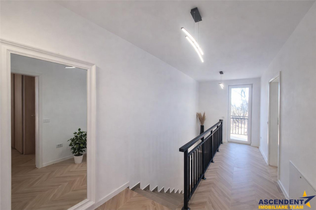 Comision chirias: 50% tva, din contravaloarea unei chirii lunare, o singura data. ASCENDENT IMOBILIARE este onorata sa va propuna spre inchiriere o casa eleganta in Stupini, intr-un cadru placut, inconjurat de verdeata si copaci, la doar 10 minute de Brasov. Va invitam sa experimentati o vizionare initiala, din locatia unde va aflati, chiar acum, prin accesarea turului virtual tridimensional: https://my.matterport.com/show/?m=DkMsQP9jdJg Beneficiind de curte proprie si teren cu pomi fructiferi, aducand o atmosfera de liniste si relaxare. Rezidenta este structurata pe parter si etaj, cu o suprafata utila de aproximativ 100 mp, fiind realizata cu finisaje moderne si dotata cu incalzire in pardoseala, ceea ce ofera un nivel ridicat de confort pe tot parcursul anului. La parter se regaseste un hol generos de aproximativ 10 mp, un living luminos cu bucatarie open space, o baie moderna cu cabina de dus si spatii ingenios amenajate pentru depozitare sub scara. Bucataria este mobilata si utilata, echipata cu plita, cuptor, hota, masina de spalat vase, frigider si electrocasnicele apreciabile pentru un stil de viata confortabil si eficient. Etajul ofera o zona de zi eleganta cu birou si acces direct catre o terasa de aproximativ 10 mp, loc ideal pentru cafeaua de dimineata sau momente de relaxare in aer liber. Tot aici se afla dormitorul matrimonial si o baie spatioasa cu cada si aerisire naturala. Locuinta se inchiriaza mobilata, totul nou si pregatita pentru mutare imediata. Animale de companie sunt binevenite. Echipa de Consilieri specializati pe oferta: doamna Gilda Georgescu Telefon/ WhatsApp: 0722 807 623 si domnul Nicolae Pavel Telefon/WhatsApp: 0720 500 650 Detalii, fotografii suplimentare si alte variante similare exclusive: www.ascendentimobiliare.ro