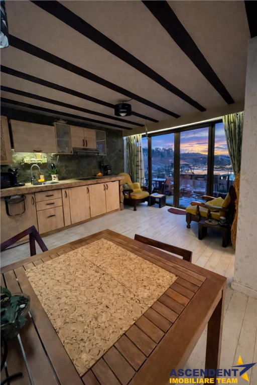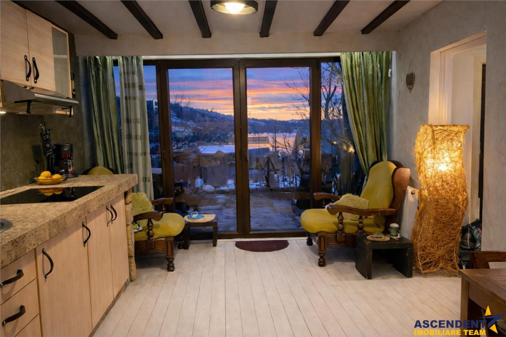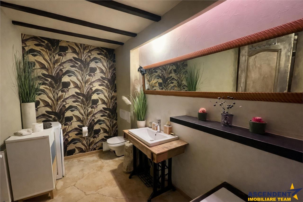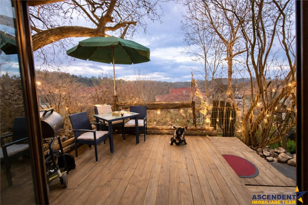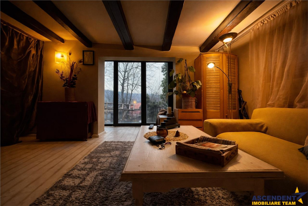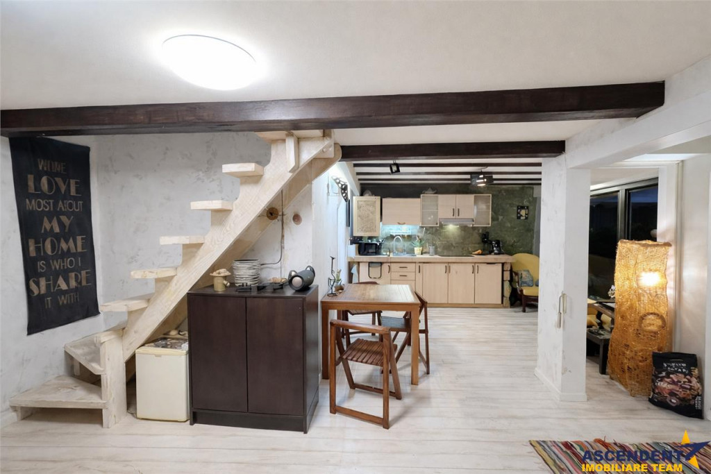 Comision chirias: 50% tva, din contravaloarea unei chirii lunare, o singura data. ASCENDENT IMOBILIARE propune spre inchiriere o proprietate chic, cu vedere panoramica spre verdele Muntilor Postavaru. FILM PREZENTARE: https://youtu.be/UfeLOfw6gwY Amplasata la doar 5 minute distanta de Piata Unirii si pozitionata intr un cartier linistit, va invit intr o casa decorata si mobilata in boho style de catre designerul si proprietarul casei. Fiecare coltisor din aceasta casa are o poveste, are un mix de culori, are emotie si parfum propriu. Configurata pe Parter si Mansarda, cu o suprafata utila de aproximativ 90 mp, proprietatea are urmatoarea compozitie: Parter: bucatarie tip open space cu zona de de zi, living, baie cu cada, veranda si loc special amenajat pe terasa pentru relaxare. Mansarda: 2 dormitoare matrimoniale cu o terasa proprie deschisa cu vedere superba catre munti, grup sanitar in curs de amenajare Recomand locul probat si savurat in aroma unei cesti de cafea dis de dimineata sau seara la apus. Accesul la mansarda se face pe o scara chic din lemn. Oferta pretabila pentru o familie iubitoare de flori si nu numai, dispuneti de o curte generoasa libera de aproximativ 300 mp, unde va puteti bucura in fiecare sezon, in special toamna de fructele culese din aceasta minunata gradina: mere, pere, gutui, coarne, nuci, coacaze, capsuni, mure, zmeura, struguri etc Va puteti bucura de momente linistite si aer curat, in locul special amenajat pe terasa, din fata casei. Dispuneti de loc de parcare exterior in fata proprietatii, chiar langa una din cele 70 troite ale cartierului stravechi Schei. Este un loc magic unde abia astepti sa ajungi dupa o zi in cotidianul social, o casa unde te intorci in fiecare seara cu drag in locul de suflet. Proprietatea dispune de toate utilitatile, centrala termica proprie, gaz, curent, apa, internet etc., precum si parchet, gresie, faianta, ferestre cu geam tip termopan. Infrastructura este minunata, dispuneti de statie de transport in comun in apropiere, magazine, banci, parcuri, supermarket-uri in zona, fiind in proximitatea Centrului Istoric. Proprietatea este izolatata termic, foarte calduroasa, avand structura calda si de lemn, este extrem de luminoasa, zona exterioara de parter fiind configurata cu geamuri mari glisante, unde patrunde lumina naturala. Cladire certificata cu clasa energetica categoria B, consumul anual specific de energie este 141,48 kwh/m2an, indicele de emisii echivalent CO2 este de 29,02 kgCO2/m2an si consumul anual specific de energie din surse regenerabile este zero(kwh/m2an). Proprietate cu disponibilitate din luna mai! Va doresc o zi cu soare in suflet! Consilier specializat pe aleasa oferta: doamna Gilda Georgescu Telefon/WhatsApp: 0722807623 Detalii, fotografii suplimentare si alte variante similare exclusive: www.ascendentimobiliare.ro