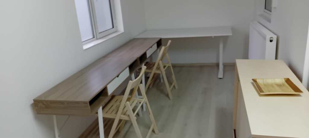 P.F. inchiriez ap. 3 camere format din dormitor+living+birou, renovat, mobilat ca in fotografii si utilat cu electrocasnice noi ( centrala termica, masina de spalat cu uscator, frigider, plita pe gaz). Apartamentul este in zona Posta Minerva, foarte aproape de statii de transport public si spatii comerciale. Se inchiriaza pentru maxim 2 persoane( ideal cuplu). Intrarea in apartament este separata, prin curtea din fata biroului.