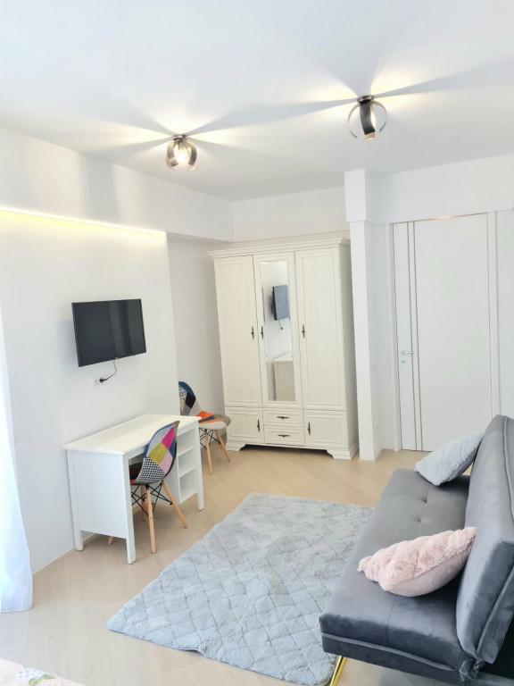 Garsoniera / studio de închiriat in complexul Delta City (deltacity.ro), Strada Povestei 10, in zona Văcărești – Tineretului, intr-un imobil finalizat in 2022. Situată la etajul 4/10, cu vedere apre Parcul Natural Vacaresti, garsoniera complet mobilata si utilata este la a 2 inchiriere. Localizare semi-centrala: Parcul Tineretului – 5 minute Parcul Natural Văcărești – 2 minute Parcul Lumea Copiilor – 3 minute Metrou Mihai Bravu – 8 minute; Metrou Piata Sudului/Mall Sun Plaza - 5 minute; Autobuz Costache Stamate – 1 minut.