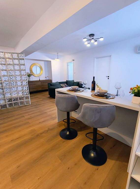 Top Home Advisors va propune spre vânzare un apartament de 2 camere amenajat modern ci bucătărie open space, mobilat și utilat complet, mașină de spălat vase, TV LCD Qled Smart TV gen 2025, aer condiționat. Liber! La cheie! Broker exclusiv
