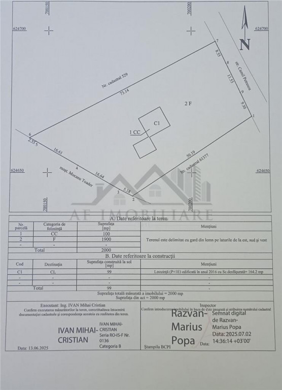 Ag. A.F.Imobiliare va propune spre vanzare VILA P 1Et pe un teren aferent in suprafata de 2000mp. cu o deschidere la str. de 30ml.