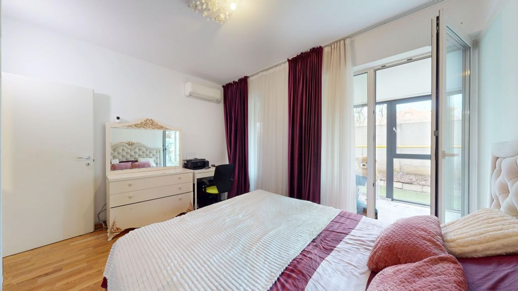 Oferta cu 0% comision pentru cumpărător!!! OPEN-HOUSE pe 16 Aprilie intre orele 15:00-19:00 Apartament cu 2 camere situat pe strada Vlad Țepeș in complexul rezidențial La Glorie Pipera, lângă strada Drumul Potcoavei sau OMV Pipera cu acces facil către autostrada A3 București Ploiești si cartierul Aviației. Foarte aproape de zona de scoli și grădinițe private de pe Iancu Nicolae. La Gloire este un ansamblu rezidențial de tip boutique finalizat in 2019. Apartamentul decomandat de 52 mp utili se afla la parter din 3, cu vedere pe spate si beneficiază in plus de o terasa de 25mp și de o grădină proprie de 45mp. Extra se poate achizitiona si locul de parcare suprateran pentru suma de 10.000Euro. Apartamentul se remarca prin finisaje premium. Beneficiază de centrala termica Veissmann cu incalzire in pardoseala, șemineu electric, aer condiționat Mitsubishi, bucătărie complet mobilata si utilata cu electrocasnice de calitate și ușa la intrare Pinum. In rest se vinde nemobilat.