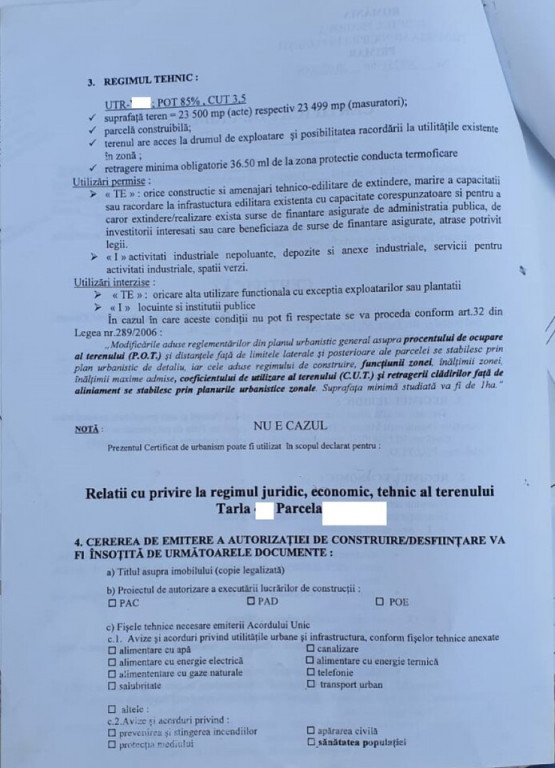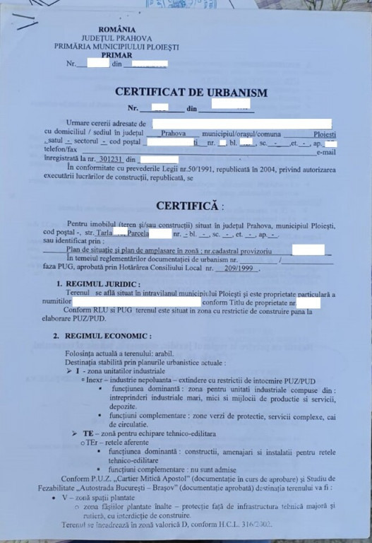 PLOIESTI zona centura vest , teren intravilan in suprafata de 23500 mp cu doua deschideri mari de peste 100 ml fiecare. Terenul este construibil , avand acces din drumul de exploatare si posibilitatea racordarii la utilitatile existente in zona . Utilizari permise : orice constructie si amenajari tehnico edilitare de extindere , activitati industriale nepoluante, depozite si anexe industriale , servicii pentru activitati industriale , spatii verzi etc . Pret de vanzare 6 euro/mp . Precizati ca ati vazut oferta cu ID-ul: 4229