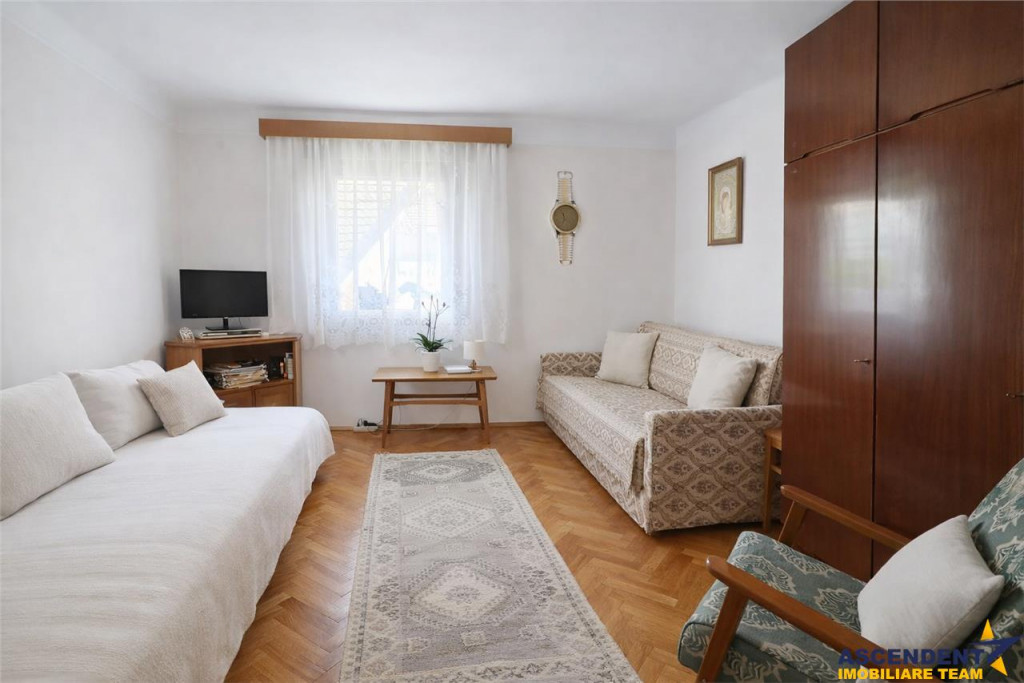 Living generos, dormitor mare matrimonial, bucatarie inchisa si camara