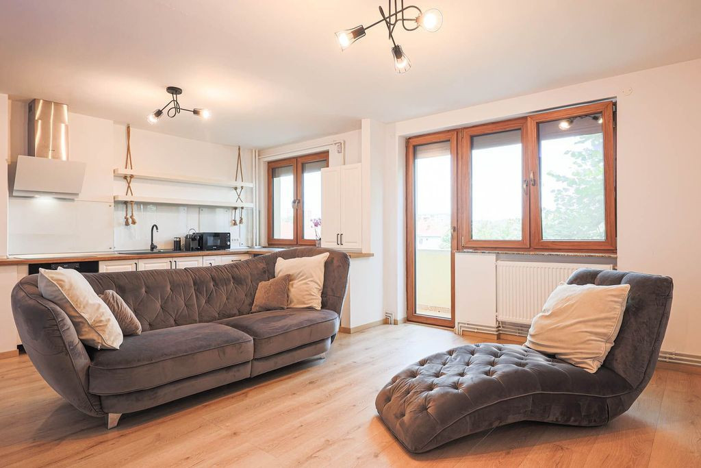 Living, bucătărie și balcon orientate spre parc – lumină naturală și aer curat