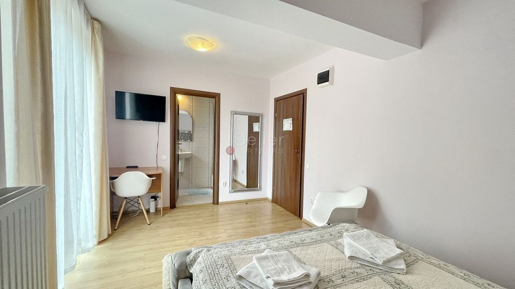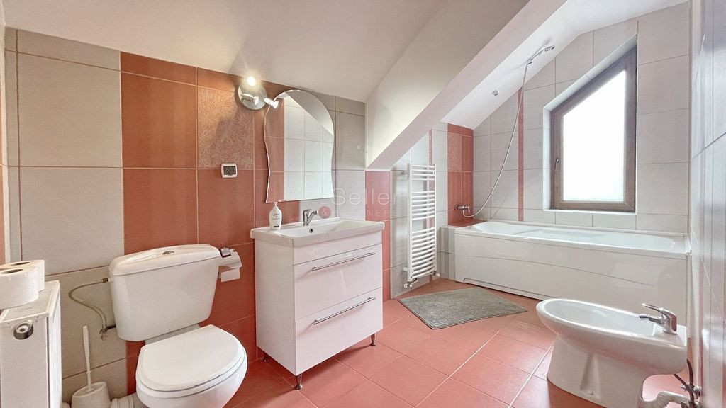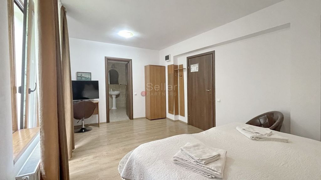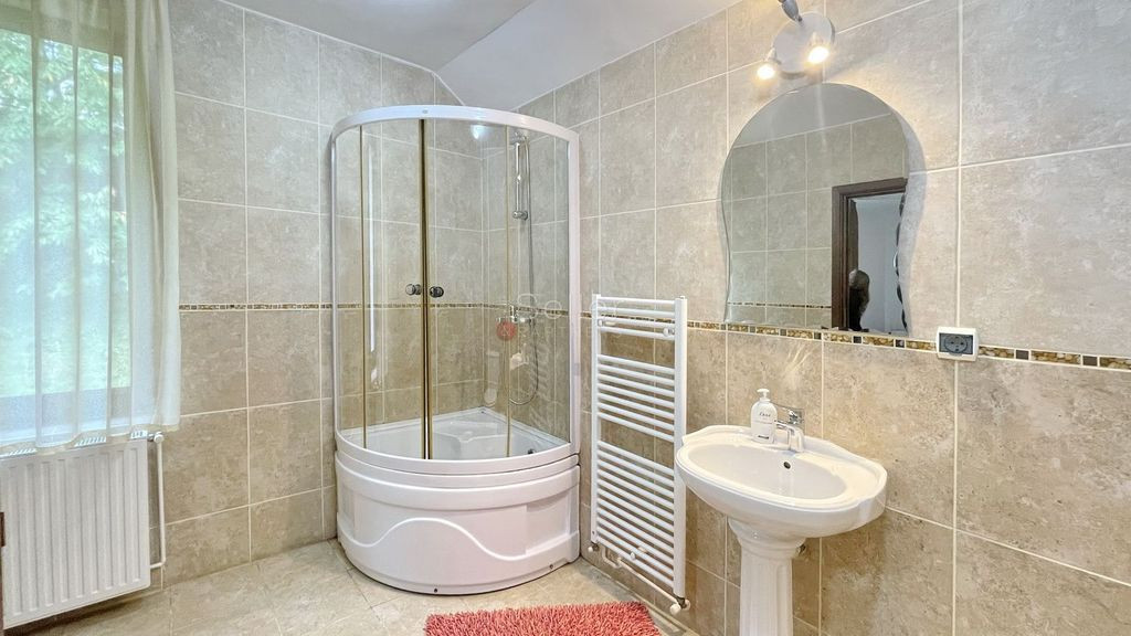 Ati accesat un imobil situat in cartierul Dambul Morii - Sacele. LOCALIZARE: Proprietatea este pozitionata in apropierea canionului 7 Scari. COMPARTIMENTARE: Imobilul este dispus pe 6 camere, avand urmatoarea compartimentare: - Desolul, care detine: un spatiu tehnic, pivnita, zona de relaxare – hobby room, grup sanitar, camera, hol, garaj. - Parterul, acesta fiind compus din: living de tip open-space, dinning, bucataria inchisa, o camera cu baie propie, grup sanitar si hol. - Etajul, care este alocat zonei de noapte, acesta detinand: un dormitor matrimonial, cu baie, 2 dormitoare cu baie si, totodata, 2 balcone. DOTARI: - centrala termica; - incalzire calorifere; - tamplarie PVC, cu geam termopan; - terasa exterioara, de cca 70 mp; - garaj 1 masina; - 4 locuri de parcare, in curte; - Utilitati: apa, gaz, curent, fosa septica; - Intabulata ca si pensiune turistica; IMPREJURIMI: Vila este situata intr-o zona de case si pensiuni din Dambul Morii . Accesul auto, pana la pana la METRO se poate face in cca. 10 minute. Pentru informatii suplimentare, broker-ul care administreaza aceasta oferta, va sta la dispozitie. Comision 2% +TVA.