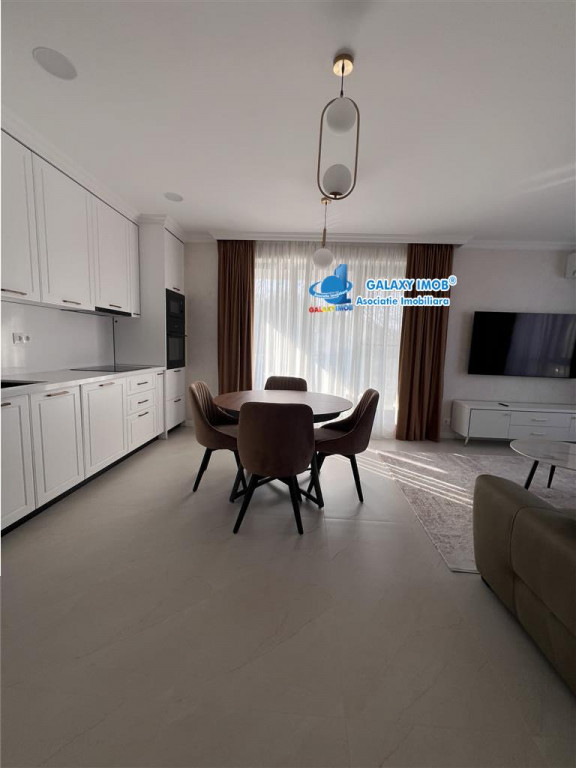 Oferta Exclusiva. Avem cheile proprietatii. Inchiriere apartament 2 camere etaj 2 Baneasa Complex Greenfield-bloc nou vedere superba catre padure Va propun spre inchiriere un apartament de 2 camere cu o suprafata construita: 63.84 mp Suprafata construita balcon: 6.58 mp Suprafata totala construita: 70.42 mp Apartamentul este situat la etajul 2 al unui imobil cu 6 niveluri ce a avut termen de finalizare noiembrie 2021. Apartamentul este foarte bine compartimentat fiind compus din living, bucatarie, 1 dormitor, 1 grup sanitar, hol si balcon. Dispune de finisaje de calitate: tamplarie PVC cu geam termopan, usa metalica, centrala proprie, parchet, gresie, faianta. Imobilul este situat in zona Baneasa - Complex Greenfield, o zona foarte linistita, Complexul dispune de: loc de joaca pentru copii, supermarketuri, spatii verzi generoase, administrare, paza permanenta, iluminat exterior, contor apa, canalizare. Pretul de inchiriere este de 800 euro/luna complet mobilat si utilat nou la prima inchiriere. Informatii eficienta energetica: Clasa energetica: A Consumul de energie primara: Indicele de emisii echivalent CO2: Consum de energie din surse regenerabile: