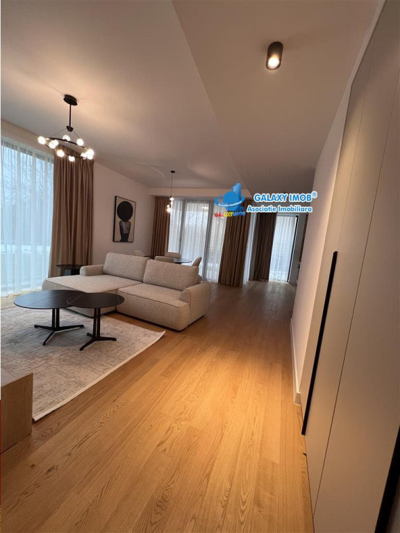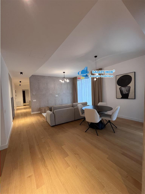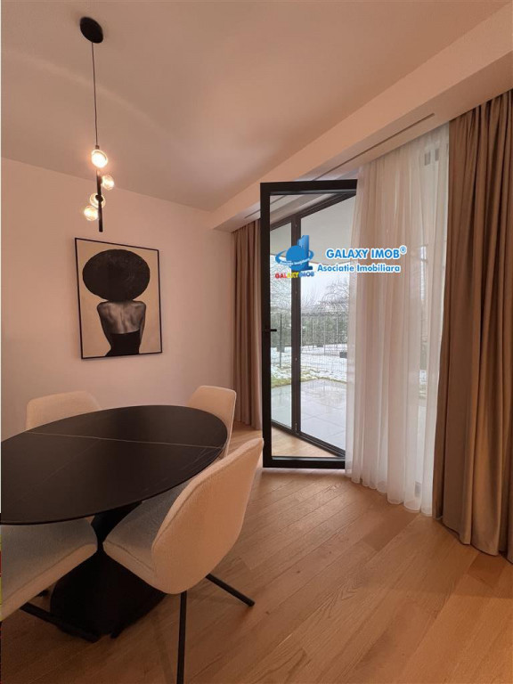 Rezidenta exclusivista cu gradina privata Pipera Privighetorilor In inima unuia dintre cele mai rafinate ansambluri rezidentiale din Pipera, se afla acest apartament elegant cu 4 camere, situat la parter, ce ofera un stil de viata comparabil cu cel al unei vile private. Cu o suprafata utila de 104 mp, proprietatea este completata de o gradina privata impresionanta de 251 mp, un adevarat refugiu verde, perfect pentru momente de relaxare, socializare sau seri intime in aer liber. Interiorul este amenajat integral cu mobilier Mobexpert, atent selectionat, imbinand designul contemporan cu functionalitatea. Confortul absolut este garantat de sistemul HVAC de ultima generatie, care asigura climatizarea si incalzirea optima pe tot parcursul anului. Finisajele premium definesc fiecare spatiu: parchet triplustratificat de inalta calitate Nobilia, usi Alumil cu design elegant si o estetica unitara ce transmite rafinament si exclusivitate. Compartimentarea este echilibrata si aerisita, cu zone generoase, lumina naturala din abundenta si acces direct din living catre gradina, oferind o continuitate perfecta intre interior si exterior. Caracteristici cheie: 4 camere #65533; parter 104 mp suprafata utila 251 mp gradina privata Complet mobilat si utilat Mobexpert Incalzire climatizare HVAC Usi Alumil Parchet triplustratificat Nobilia Ansamblu rezidential premium, securizat O proprietate rara, dedicata celor care apreciaza spatiul, intimitatea si eleganta discreta, intr-o zona selecta a Bucurestiului. Locuri parcare subterana disponibile la pretul de 110 euro TVA /luna comision agentie 50% din cuantumul pretului total de inchiriere Informatii eficienta energetica: Clasa energetica: A Consumul de energie primara: Indicele de emisii echivalent CO2: Consum de energie din surse regenerabile: