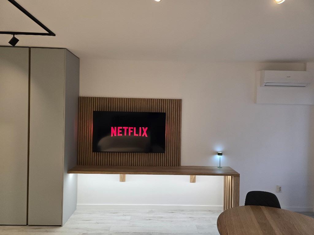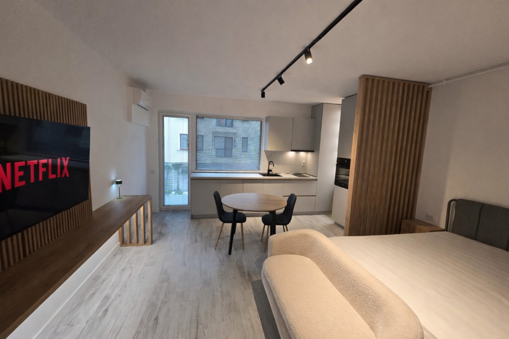 Garsoniera / Studio in Complex La Foresta (Otopeni - Tunari) - Direct proprietar - Prima inchiriere - Suprafata: 33 mp - Etaj: 1/2 - Electrocasnice: masina spalat vase, masina spalat rufe, plita inductie, cuptor electric, frigider, hota, cuptor microunde, aer conditionat, aspirator, TV, router wireless, centrala termica proprie gaze, incalzire in pardoseala - La 300m de padure - Include loc de parcare suprateran - Ascensor - Se poate face vizionare la distanta - Nu se permite fumatul la interior si nici accesul animalelor de companie - Pret: 480 EUR / luna (prima luna + o luna garantie) - Se inchiriaza pe termen lung, cel putin un an