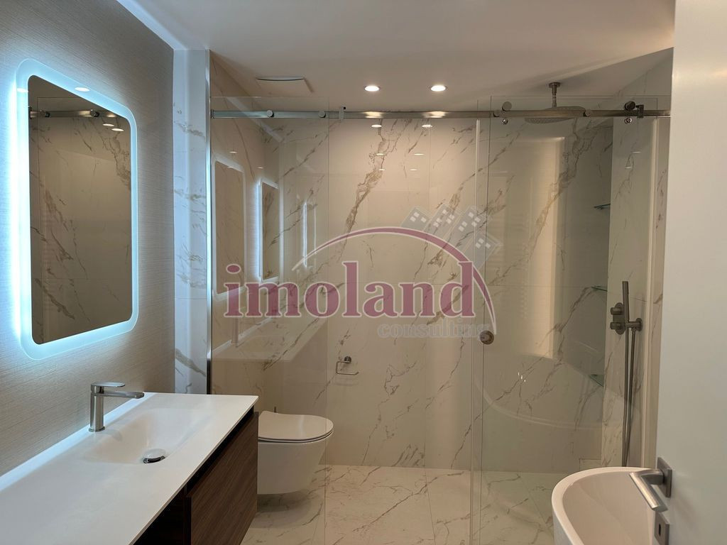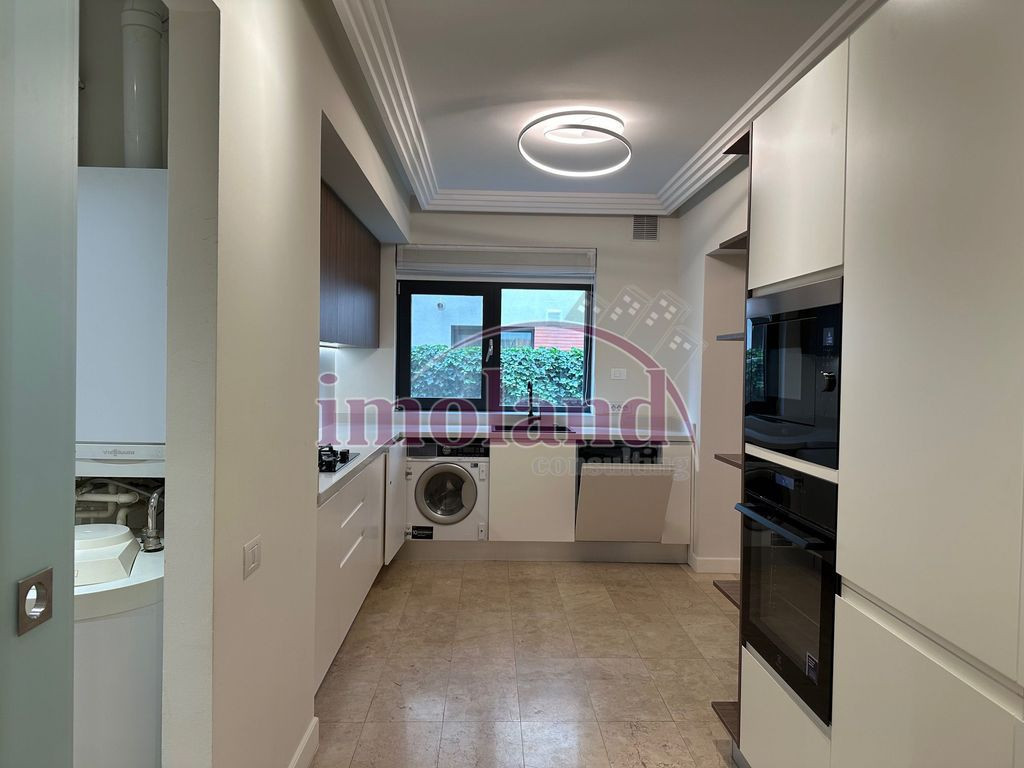 Va propunem la inchiriere un apartament splendid cu 3 dormitoare in complexul Washington Residence. Situata la etajul trei al unui imobil cu 4 etaje, aceasta proprietate are un living cu dining de 54 mp, cu acces la o terasa de 14 mp. Apartamentul se preda renovat integral, partial mobilat, cu bucataria echipata si utilata la cele mai inalte standarde. Proprietatea are 3 dormitoare: cel matrimonial cu baie cu cada/cabina de dus si dressing, al doilea dormitor cu un dulap tip dressing si al treilea tot cu un dulap dressing si acces la terasa de 10 mp. O alta baie pe hol, cu cada si cabina dus, un grup sanitar pentru oaspeti, un hol la intrare cu dulap pentru cuier/haine si incaltaminte completeaza cei 160 mp de spatiu util. Apartamentul beneficiaza de finisaje premium, de centrala termica proprie si de sistem de climatizare centralizat, dar si de o boxa si un loc de parcare in garajul subteran (accesul in parcarea subterana se face prin sistemul de recunoastere a numarului de la masina). Ansamblul este ideal pentru familii cu copii, fiind monitorizat cu camere video si avand servicii de paza 24/24h. Washington Residence beneficiaza de multa vegetatie, de o zona de promenada, accesul fiind exclusiv pietonal. In incinta complexului exista si o sala de fitness.