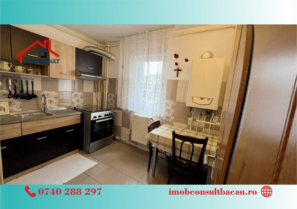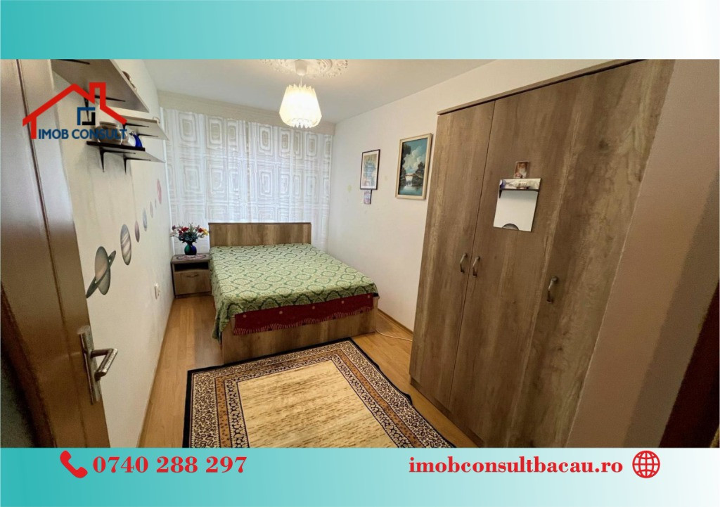 Echipa Imob Consult Bacau vă propune spre închiriere un apartament elegant cu 3 camere, semidecomandat, situat la etajul 1 al unui imobil cu regim de înălțime P+4, amplasat într-o zonă liniștită și bine cotată – zona Banca Națională. Proprietatea are o compartimentare funcțională și este compusă din living spațios, două dormitoare, bucătărie complet utilată, baie și balcon. Apartamentul se închiriază complet mobilat și utilat, dispunând de toate dotările necesare pentru un confort modern: • centrală termică proprie, • electrocasnice, • mobilier de calitate, • apartament curat si bine intrtinut. Imobilul se află într-o zonă excelentă, cu acces facil către mijloace de transport în comun, instituții bancare, unități de învățământ, magazine și alte puncte de interes. Programează o vizionare și fii primul care locuiește aici! - Corina: 0740 288 297; - Cosmin: 0754 583 811, sau la sediul agenției noastre, Imob Consult Bacau, situat pe strada Banca Națională nr. 27 la intersecția cu Str. Neagoe Vodă, langa Irish Pub.