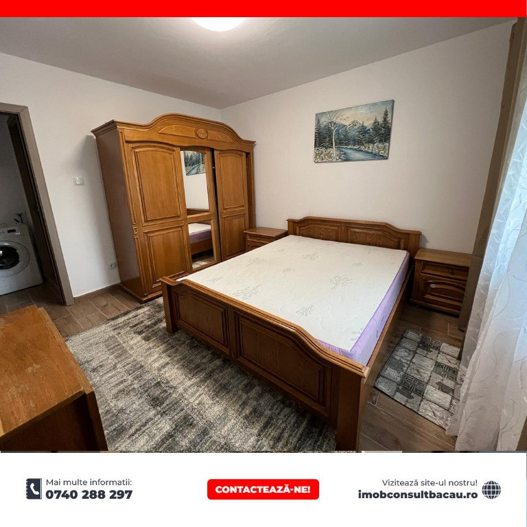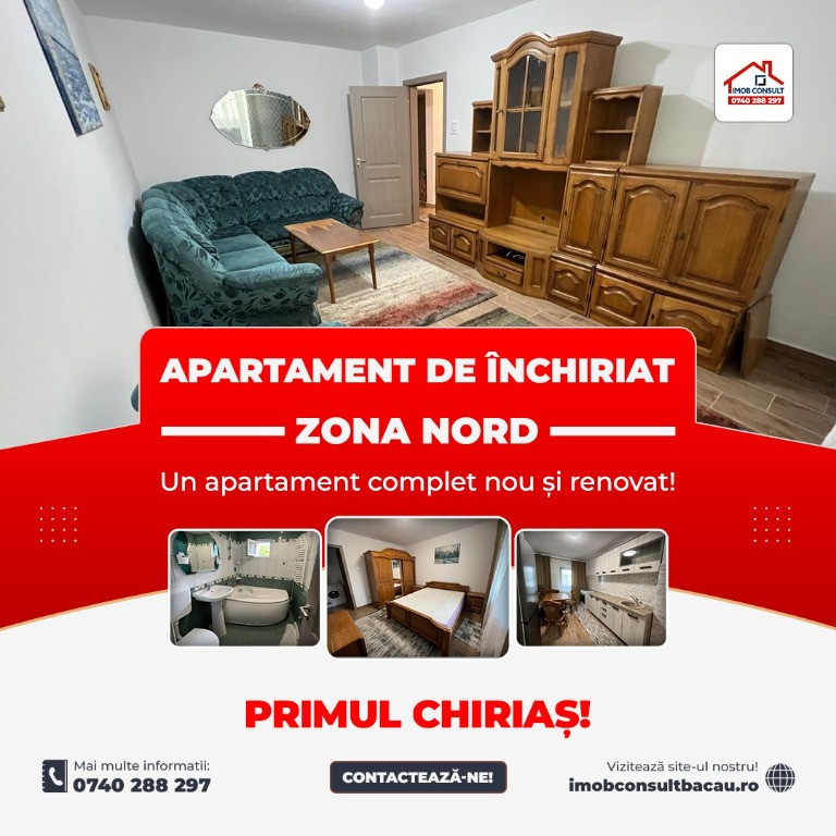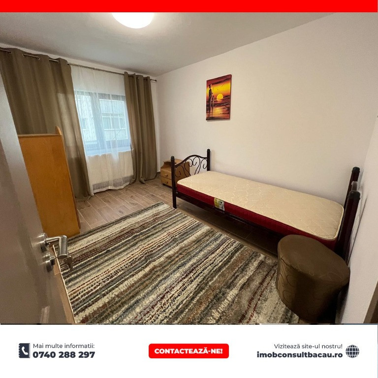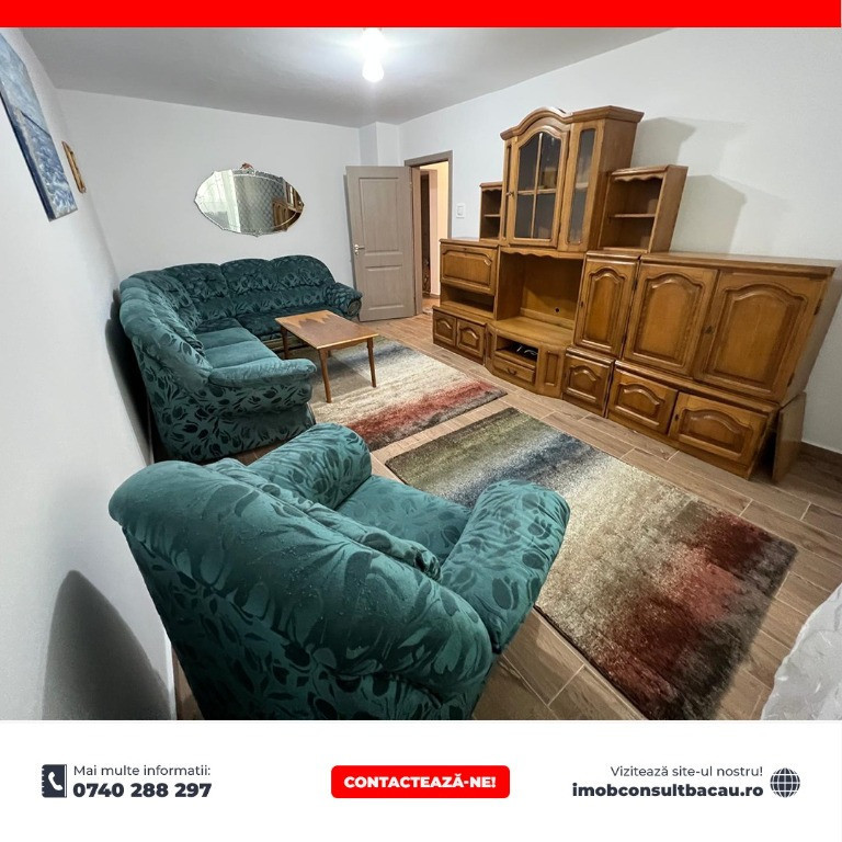 Echipa Imob Consult Bacau, va prezinta spre inchiriere un apartament cu trei camere decomandate, situat la etajul 1 al unui imobil cu 4 etaje. Avantaje: - Primul chiriaș; - 3 camere, decomandat, recent renovat; - Zona Nord / 22 Decembrie ; - Etaj 1 - cel mai căutat; - Suprafata generoasa - 70 m² Te așteaptă un apartament complet nou și renovat, gata să devină acasă. Situat într-o zonă excelentă, aproape de punctele de interes ale orașului, acest apartament îți oferă tot confortul de care ai nevoie. Perfect pentru o familie sau un cuplu care își dorește confortul unui apartament nou, într-o zonă liniștită și bine conectată! Programează o vizionare și fii primul care locuiește aici! - Corina: 0740 288 297; - Lacramioara: 0758 262 533, sau la sediul agenției noastre, Imob Consult Bacau, situat pe strada Banca Națională nr. 27 la intersecția cu Str. Neagoe Vodă, langa Irish Pub.