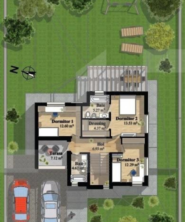 Blitz va ureaza bun venit la această frumoasă casă individuală situată într-un ansamblu privat de 30 de case, oferindu-vă o atmosferă liniștită și privată, într-o comunitate selectă. Cu o suprafață generoasă de 139 mp și un teren spațios de 535 mp, această proprietate îmbină confortul modern cu funcționalitatea optimă și designul rafinat. Caracteristici Principale: Localizare Ideală: Ansamblul privat beneficiază de un drum asfaltat și toate utilitățile trase, oferindu-vă confort și accesibilitate în orice moment. Compartimentare Eficientă: Casa dispune de două nivele bine definite. La primul nivel, veți găsi un living spațios integrat cu o bucătărie open space, ideal pentru momente de relaxare și socializare. De asemenea, există un spațiu de depozitare practic și o baie pentru confortul dumneavoastră, plus garaj. Confort la Etaj: Al doilea nivel găzduiește trei camere, inclusiv un dormitor master cu dressing și baie proprie pentru intimitate și relaxare absolută. De asemenea, există o altă baie comună și un balcon tip logie, oferind o vedere plăcută și spațiu suplimentar de relaxare în aer liber. Facilități Suplimentare: Proprietatea include trei locuri de parcare - un garaj și două locuri exterioare, asigurând confort și accesibilitate pentru familia dumneavoastră. De asemenea, beneficiați de o curte frumos amenajată și o terasă spațioasă, perfecte pentru petrecerea timpului în aer liber și pentru activități sociale. Casa se preda la nivel semifinisat, inclusiv toate instalațiile trase pe poziție, geamuri termopan triple pentru izolare optimă și o centrală termică proprie cu sistem instalat pentru încălzirea în pardoseală, asigurând confortul termic în orice sezon. Pretul afisat este cu tot cu TVA. Această proprietate reprezintă o oportunitate unică de a trăi într-un mediu confortabil și sigur, înconjurat de natură și de facilități moderne. Contactați-ne astăzi pentru a programa o vizionare și pentru a descoperi toate beneficiile acestei case minunate! Cod ofertă / ID BLITZ: P134607 Id intern: P134607